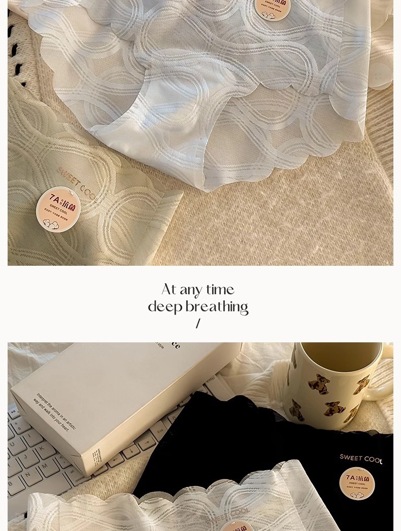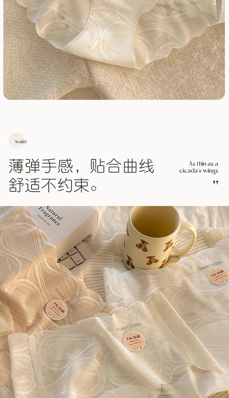 여름 아이스 실크 벌거 벗은 소녀의 속옷 통기적이고 편안한 7A 박테리아 정적인 순면 중간 허리 순수한 욕망 여성 브리프스토어 가기