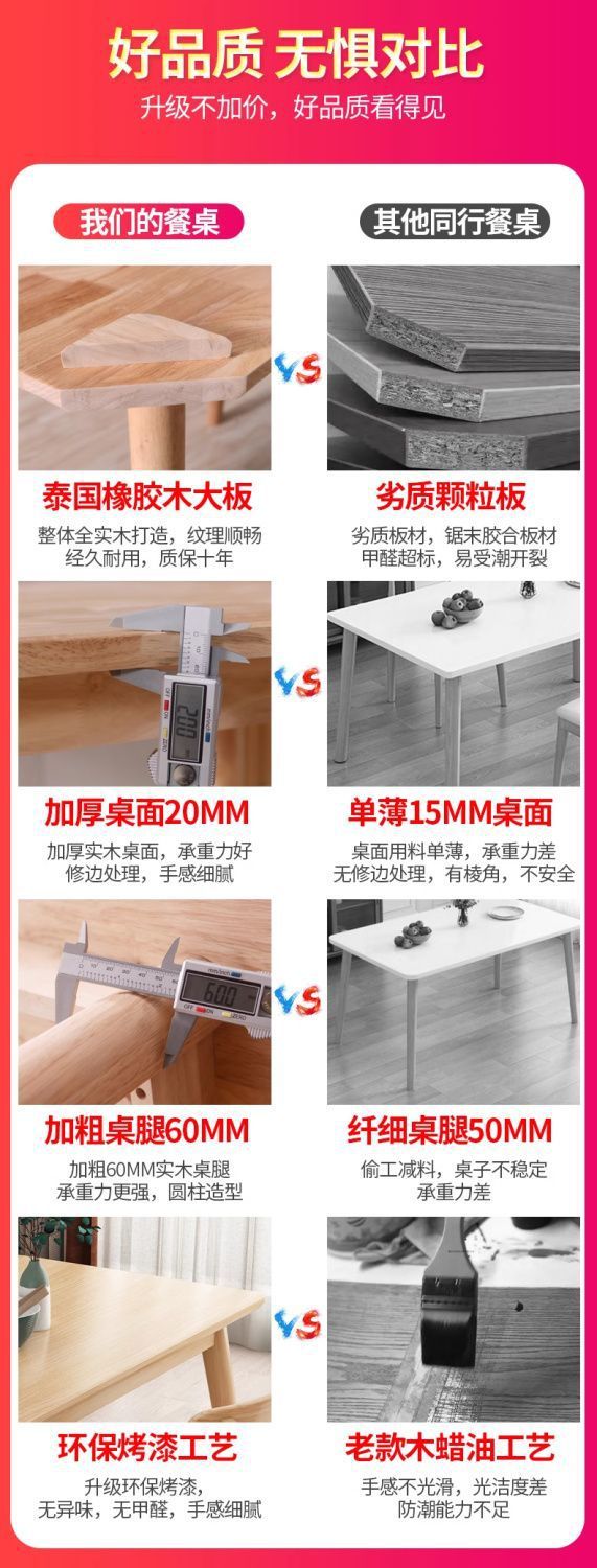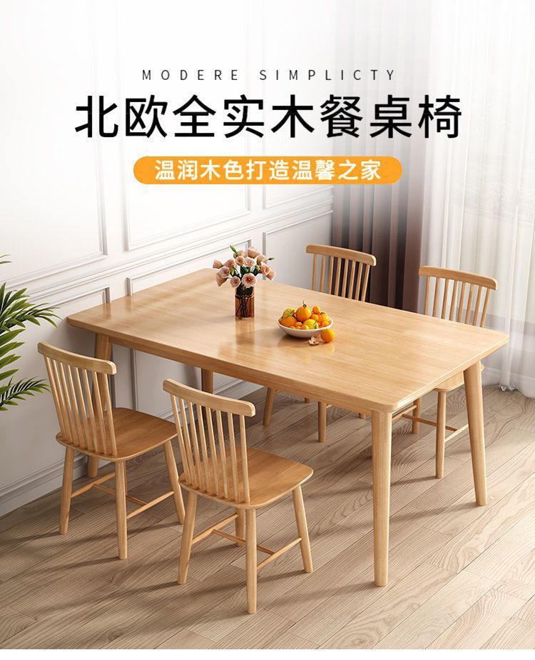 단단한 나무 식탁 가정용 내구성 거실 식탁 임대 집 직사각형 식탁과 의자 조합 테이블 4 의자 작은 아파트스토어 가기