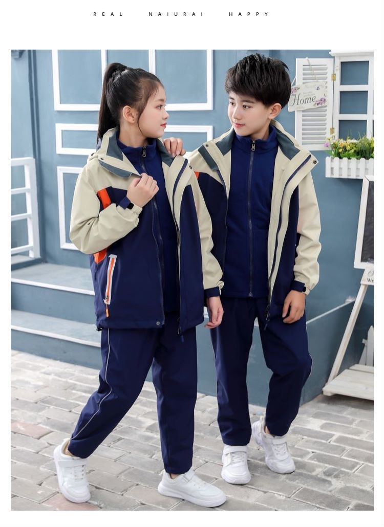 초등 및 중등 학교 학생을위한 겨울 교복 2 조각 분리 가능한 어린이 정원 옷 두꺼운 세트 클래스 옷 3 대 1스토어 가기