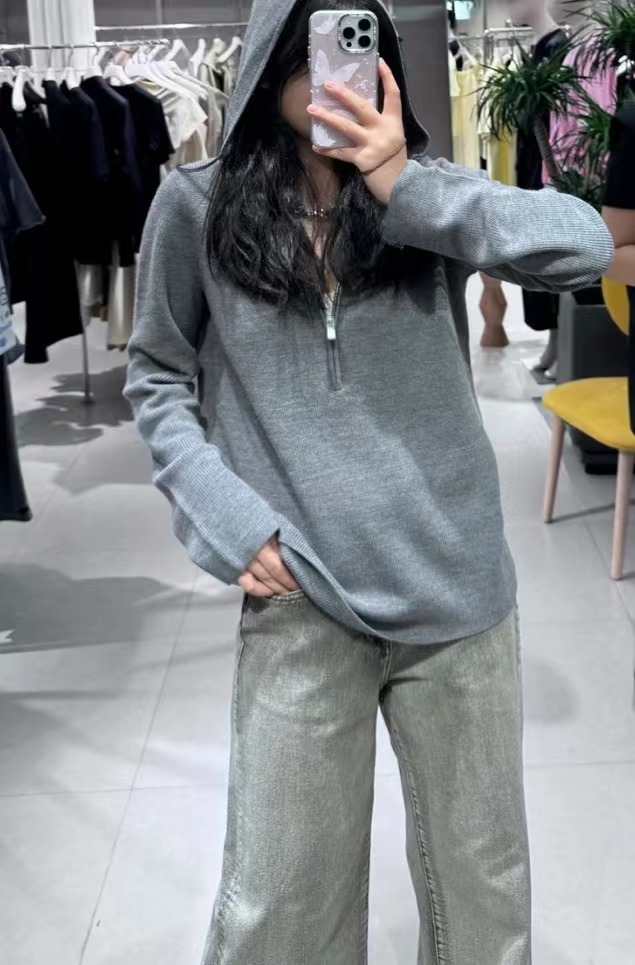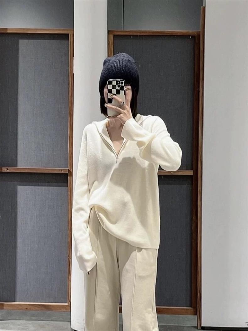 24 가을 새로운 올 매치 캐주얼 스포츠 스타일 하프 지퍼 후드 니트웨어 느슨한 게으른 스타일 긴팔 탑