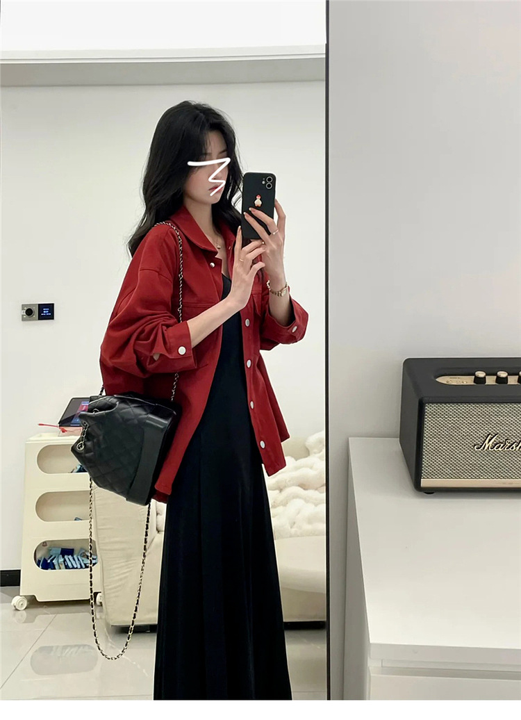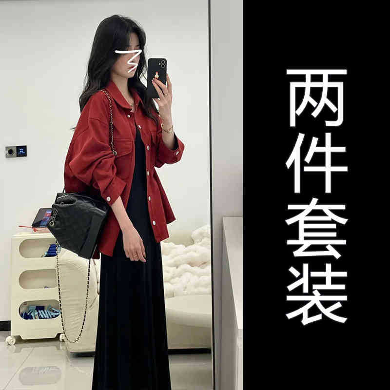 초가을 착용 셔츠와 서스펜더 스커트 투피스 세트 2024 초가을 여성을 위한 새로운 프렌치 스타일 드레스스토어 가기