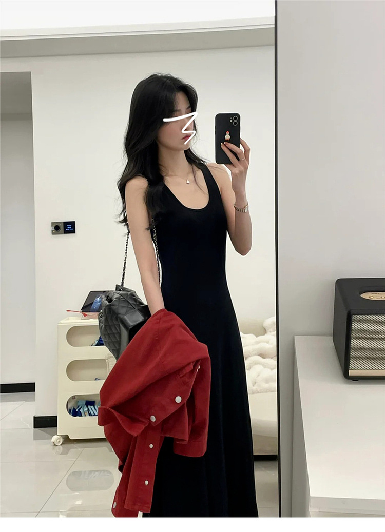 官图 初秋搭配一整套高级感气质黑色背心吊带连衣裙女2024新款