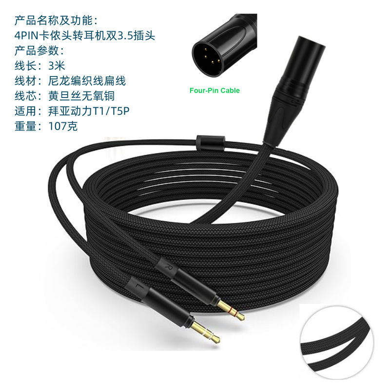 Beyerdynamic T1 헤드폰 케이블, XLR 헤드 연결 케이블, 헤드폰 오디오 케이블 T5p 업그레이드 수리 교체 케이블에 적합스토어 가기