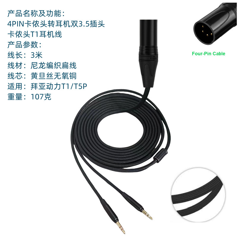 Beyerdynamic T1 헤드폰 케이블, XLR 헤드 연결 케이블, 헤드폰 오디오 케이블 T5p 업그레이드 수리 교체 케이블에 적합