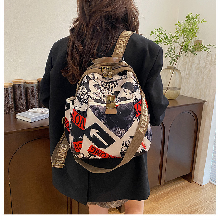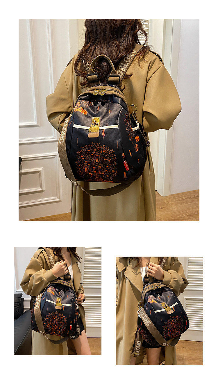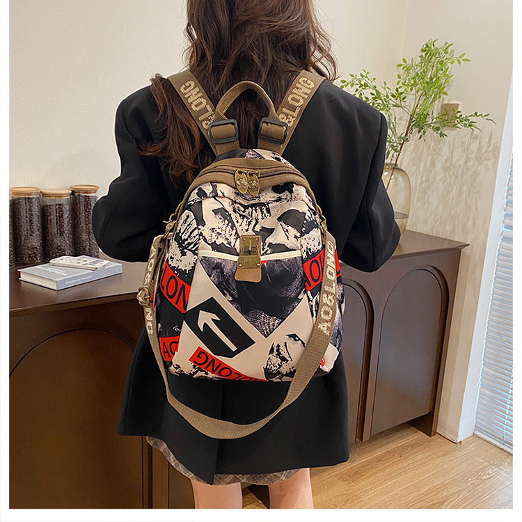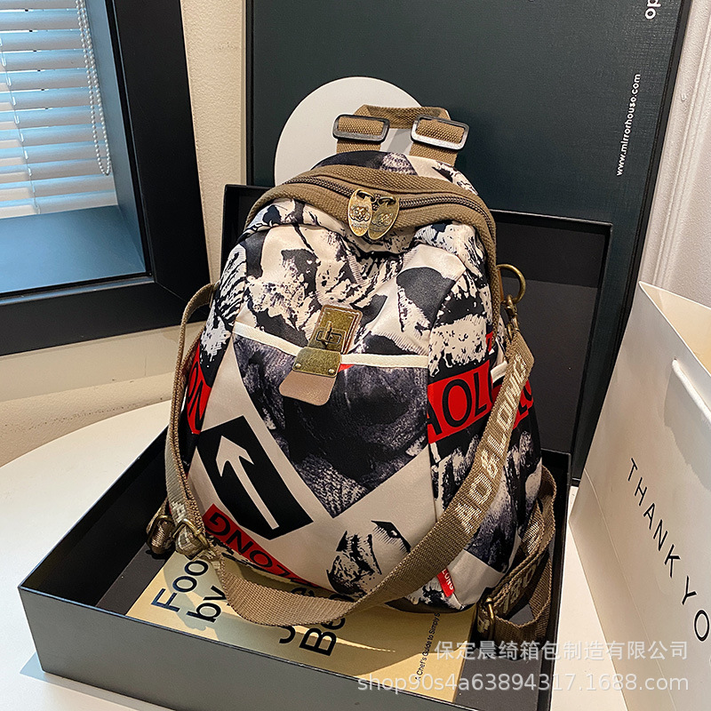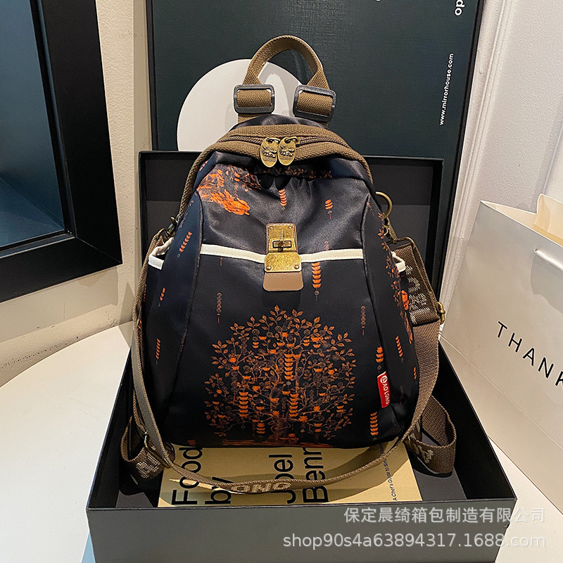 국내 트렌디 브랜드의 새로운 대용량 에스닉 스타일 트렌디 프린트 백팩 여성 패션 다용도로 어깨에 메거나 크로스바디로 착용 가능