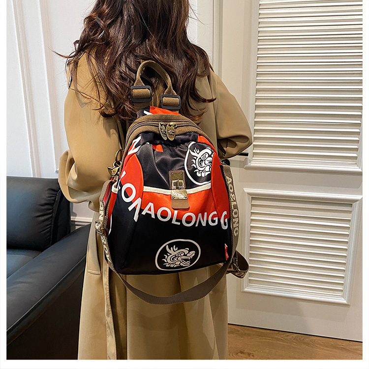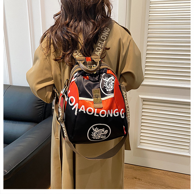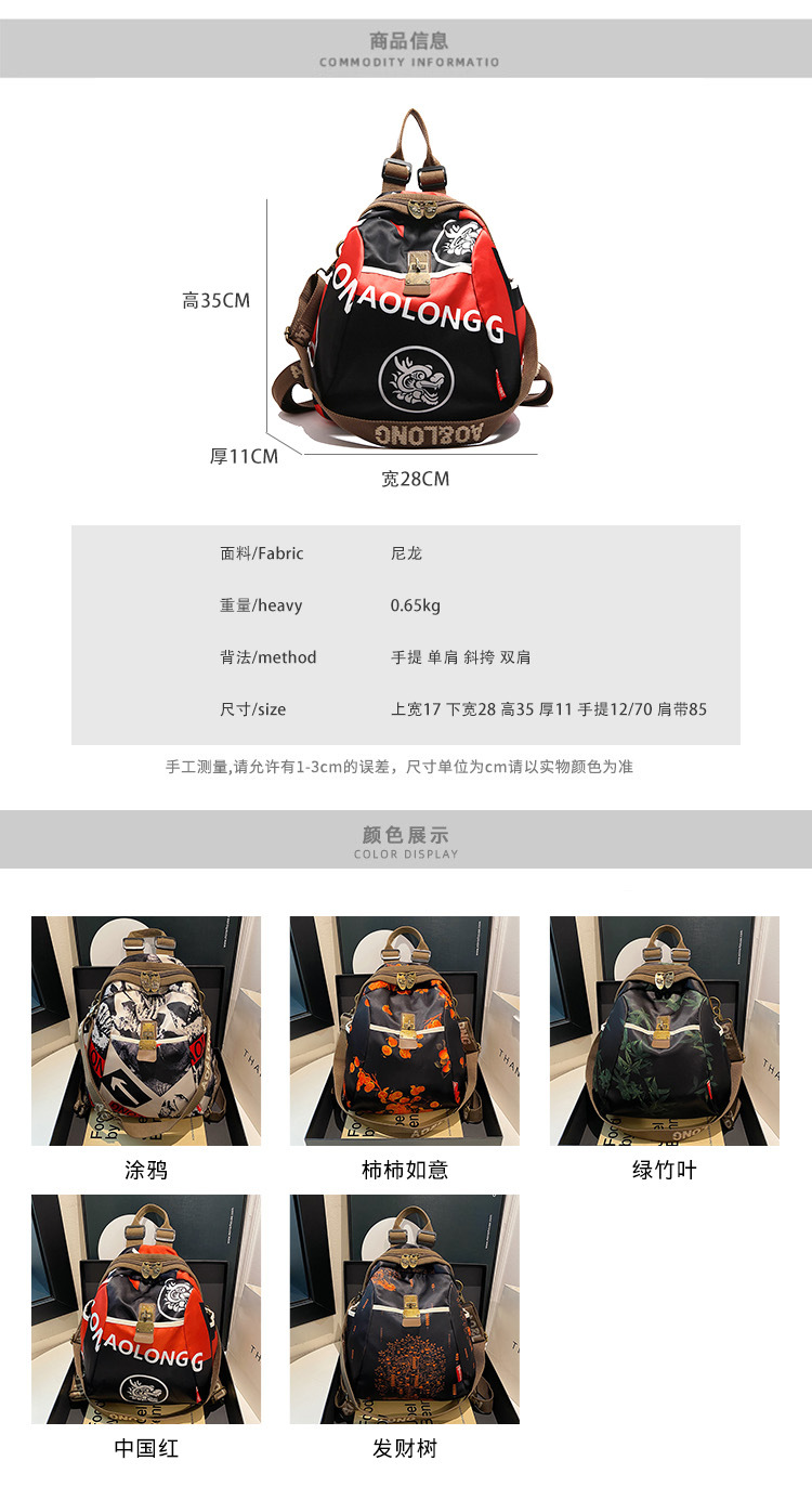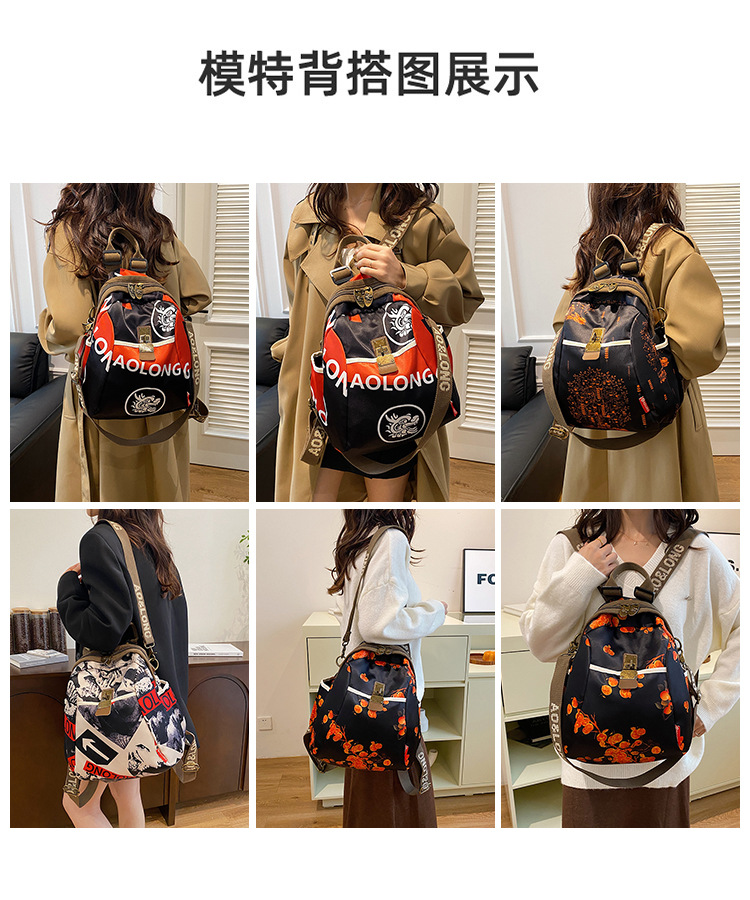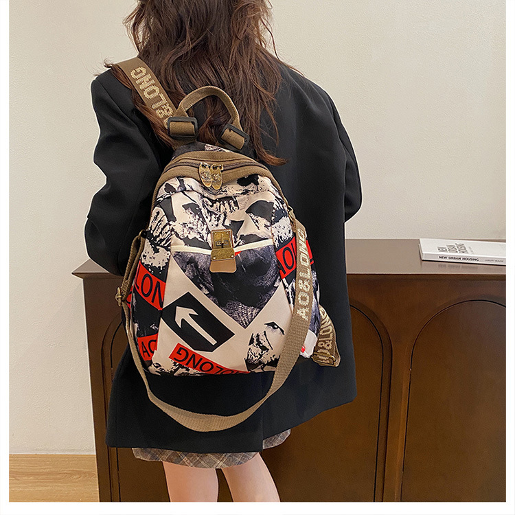 국내 트렌디 브랜드의 새로운 대용량 에스닉 스타일 트렌디 프린트 백팩 여성 패션 다용도로 어깨에 메거나 크로스바디로 착용 가능
