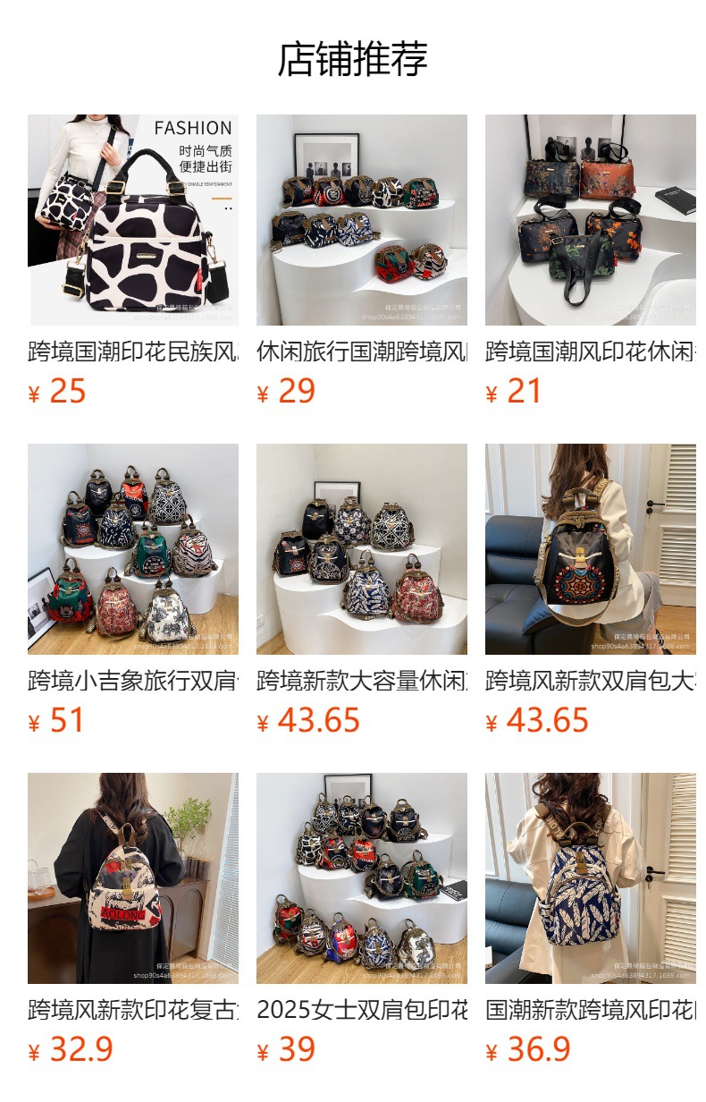 국내 트렌디 브랜드의 새로운 대용량 에스닉 스타일 트렌디 프린트 백팩 여성 패션 다용도로 어깨에 메거나 크로스바디로 착용 가능스토어 가기