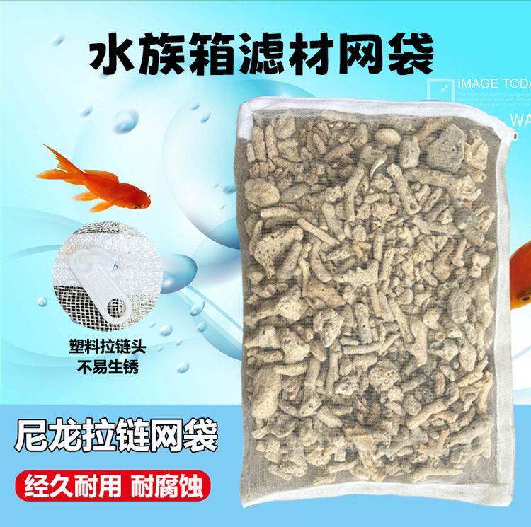 흰색 나일론 메쉬 가방 멀티 사이즈 하이 퀄리티 지퍼 물고기 탱크 필터 소재 세라믹 링 메쉬 가방 수족관 메쉬 가방