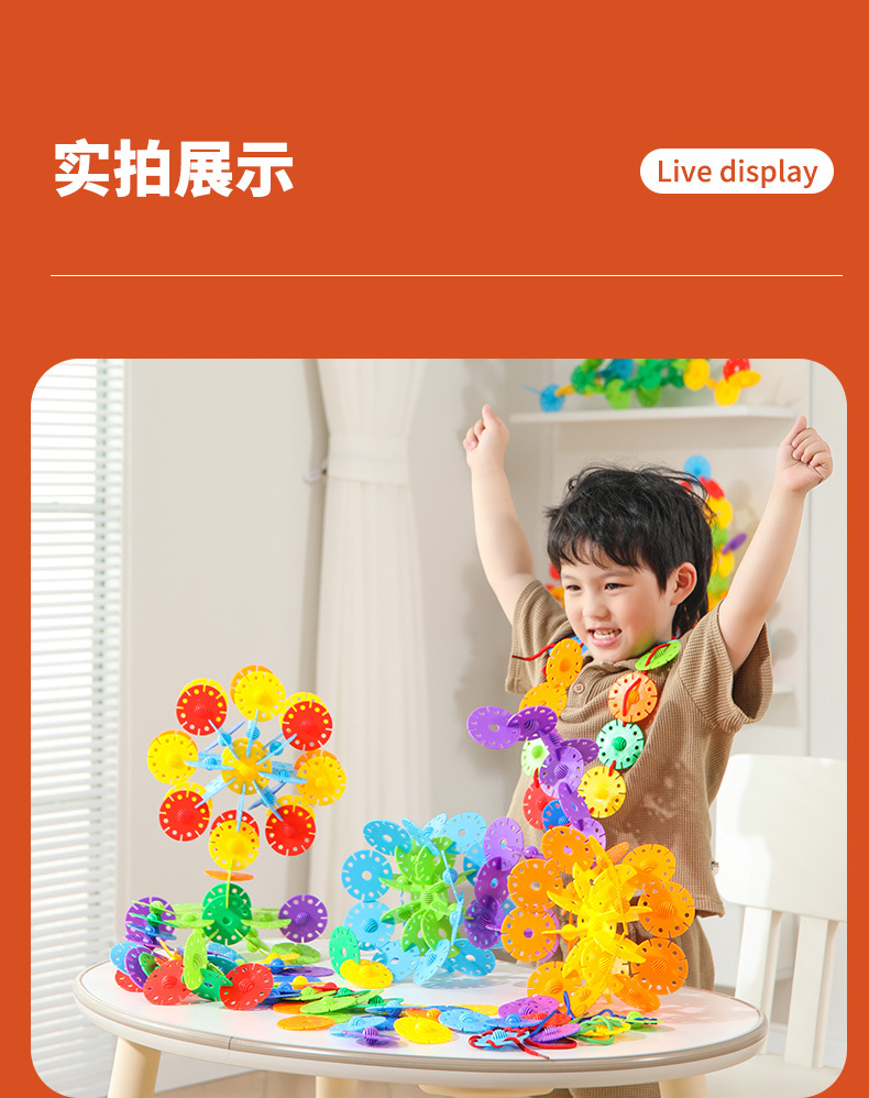 해바라기 로프 스레딩 대형 눈송이 유치원 교육 장난감 플라스틱 빌딩 블록 조립 유치원스토어 가기