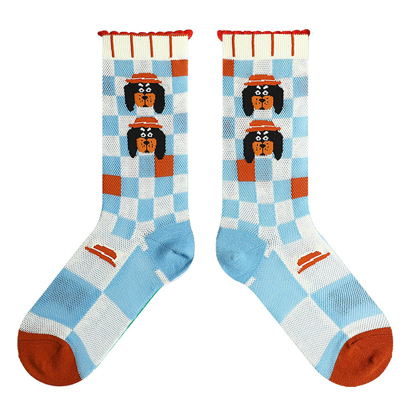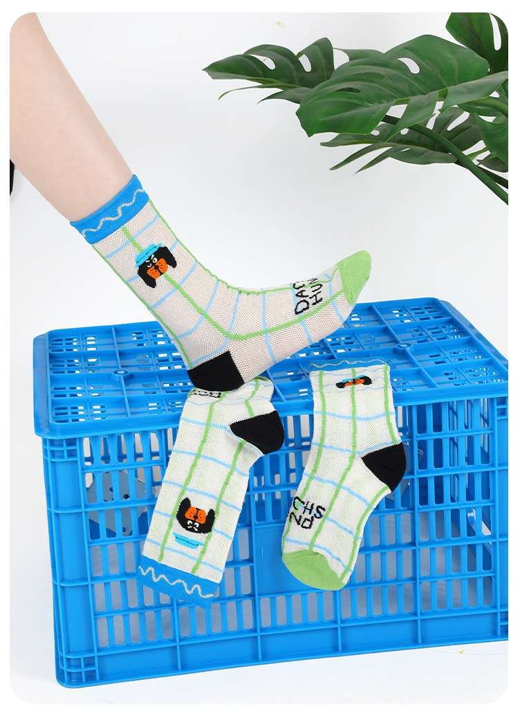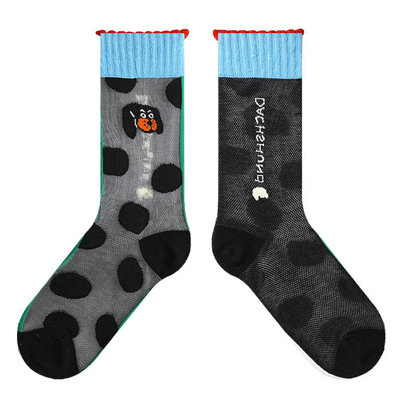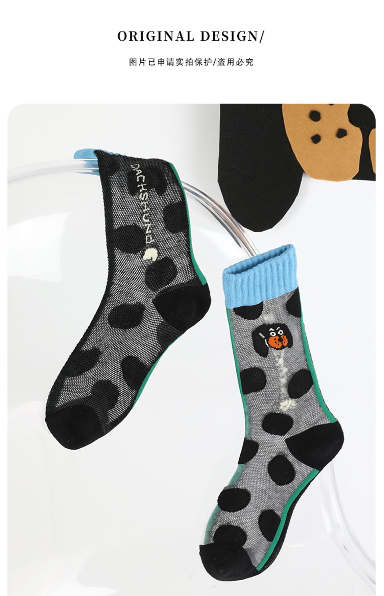 한국 동대문 인 만화 귀여운 강아지 종아리 양말 여성 여름 얇은 유리 메쉬 시원한 스타킹
