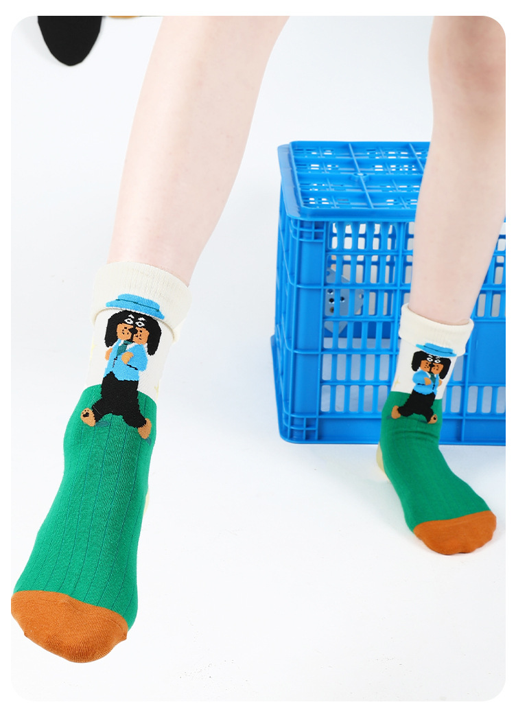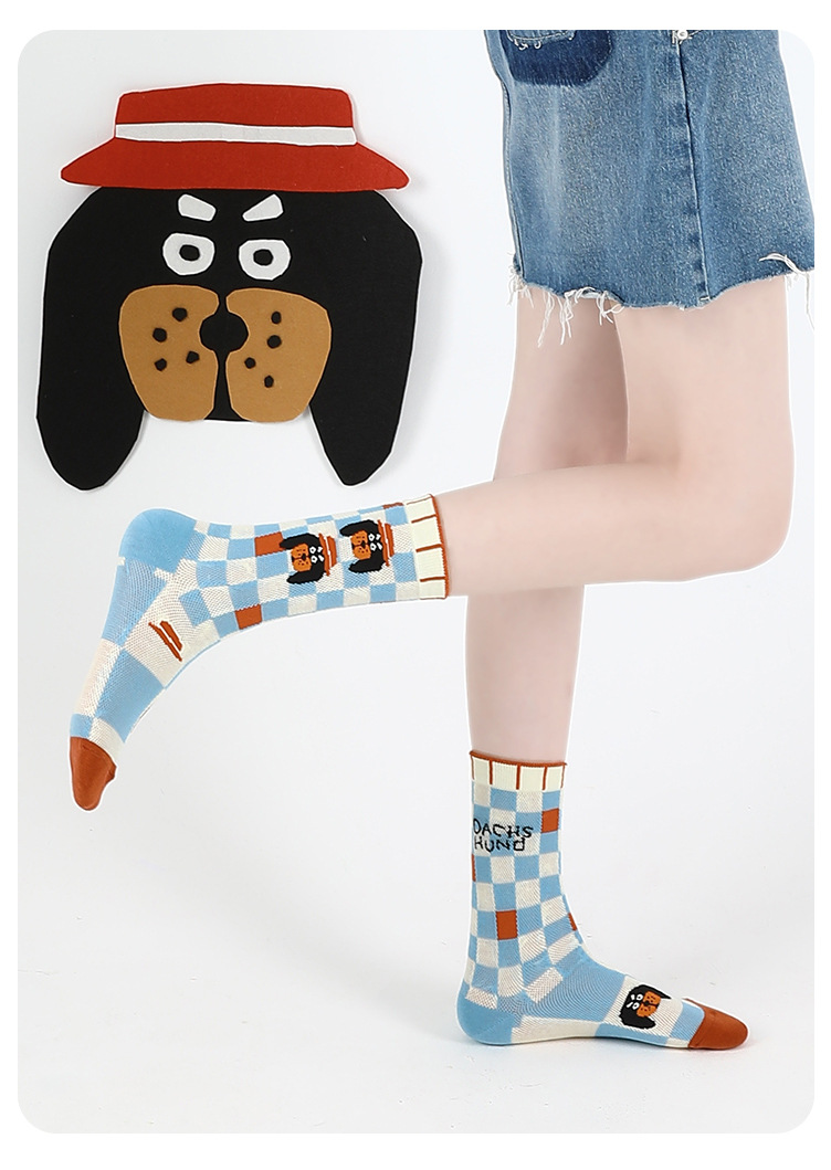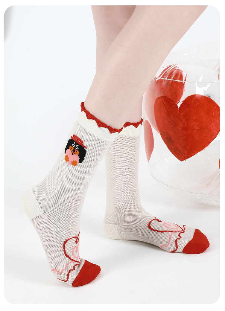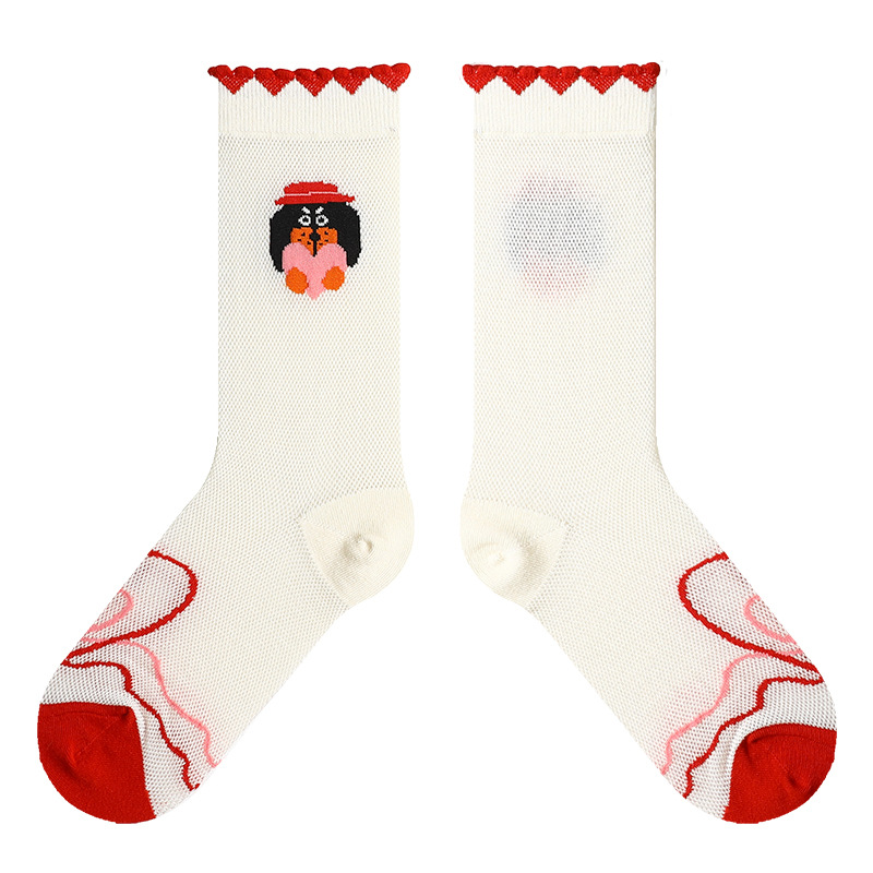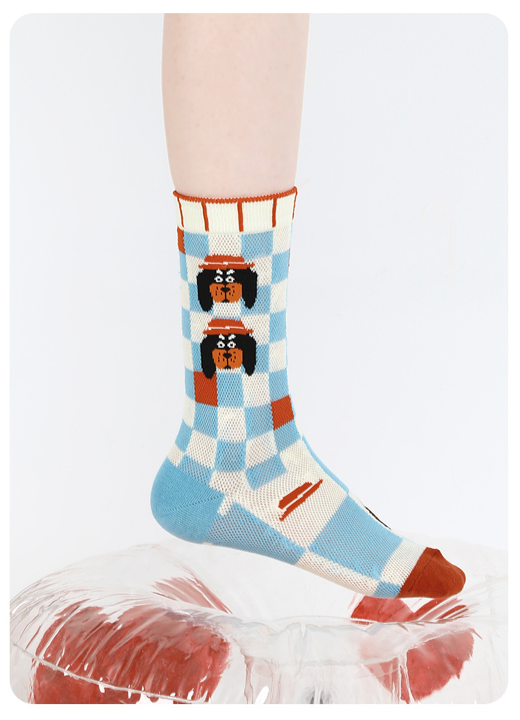 한국 동대문 인 만화 귀여운 강아지 종아리 양말 여성 여름 얇은 유리 메쉬 시원한 스타킹