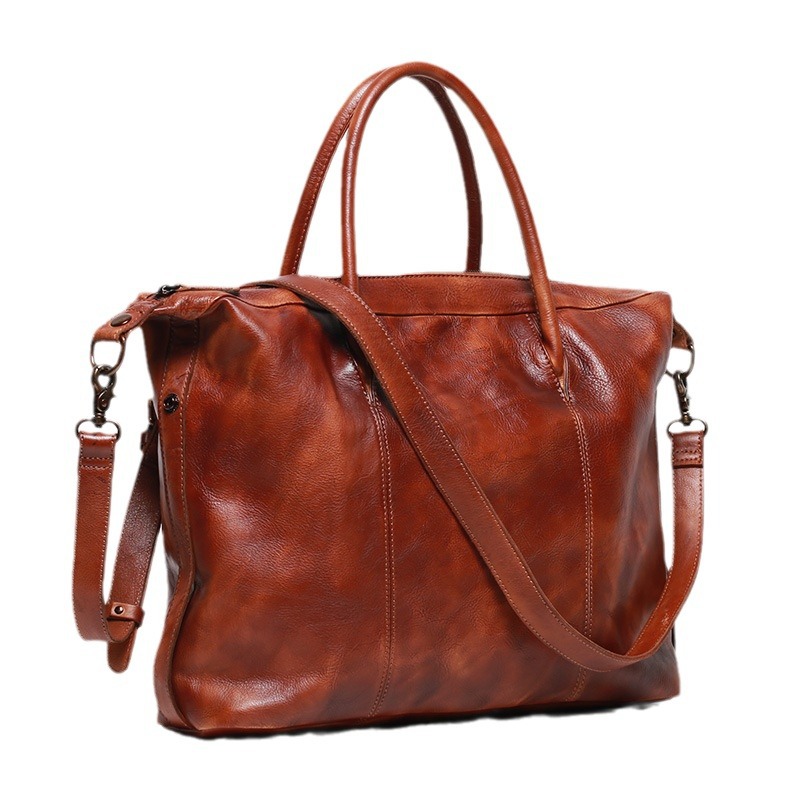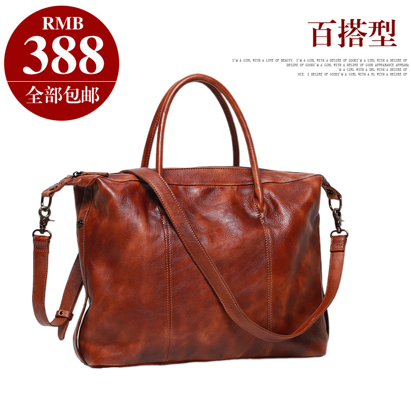 定制真皮手提单肩包植鞣皮质头层牛皮手提包复古男士大容量斜挎包