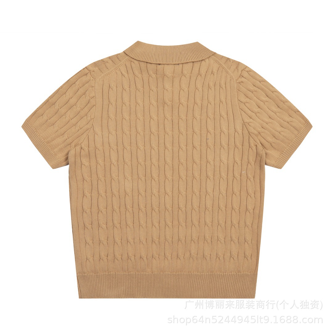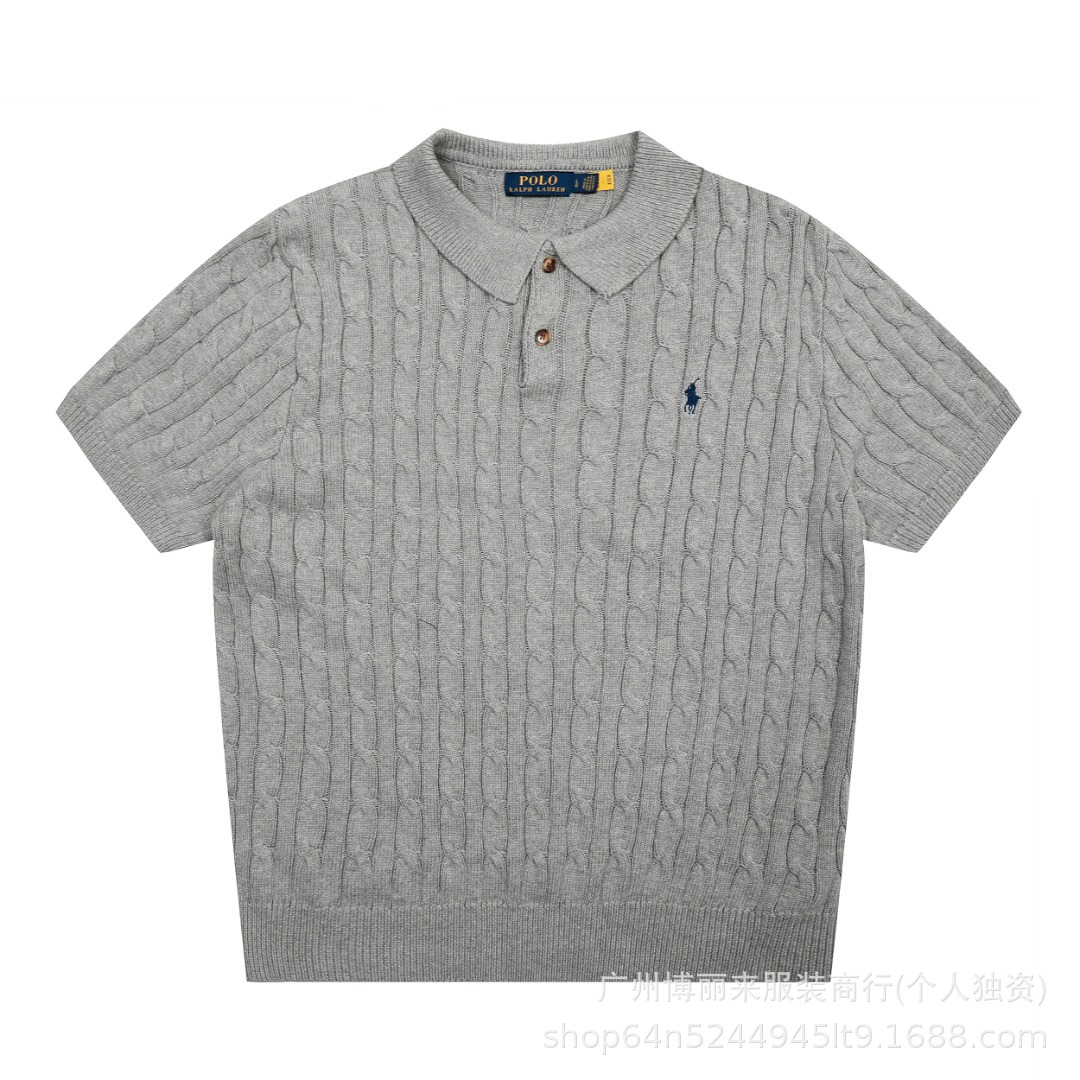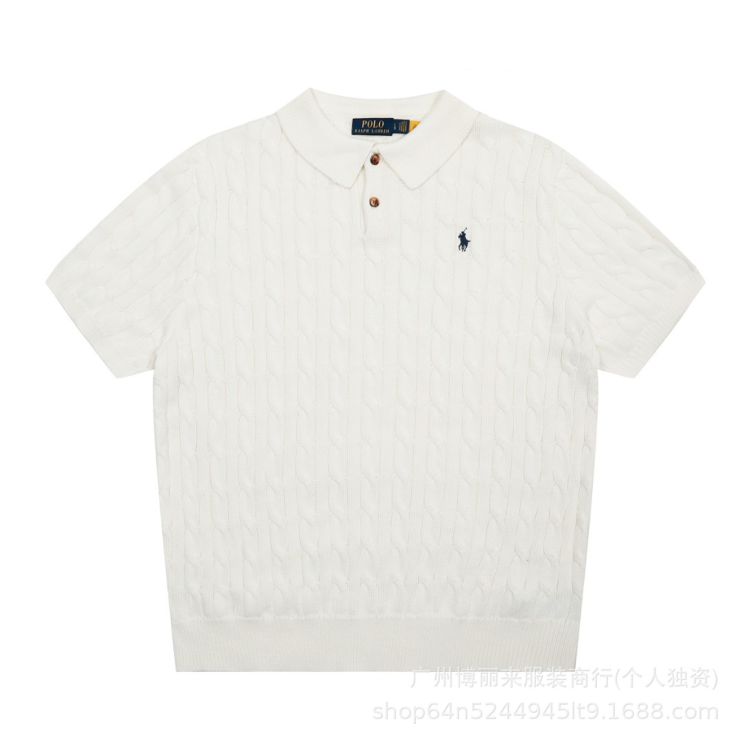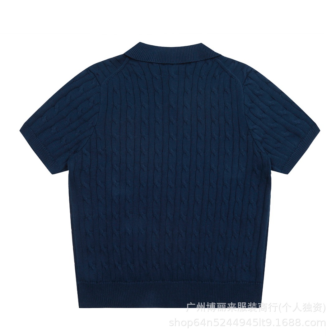 스윕 코드-RL 포니 로고 자수 옷깃 반팔 스웨터 트위스트 옷깃 간단한 티셔츠 재킷 생성