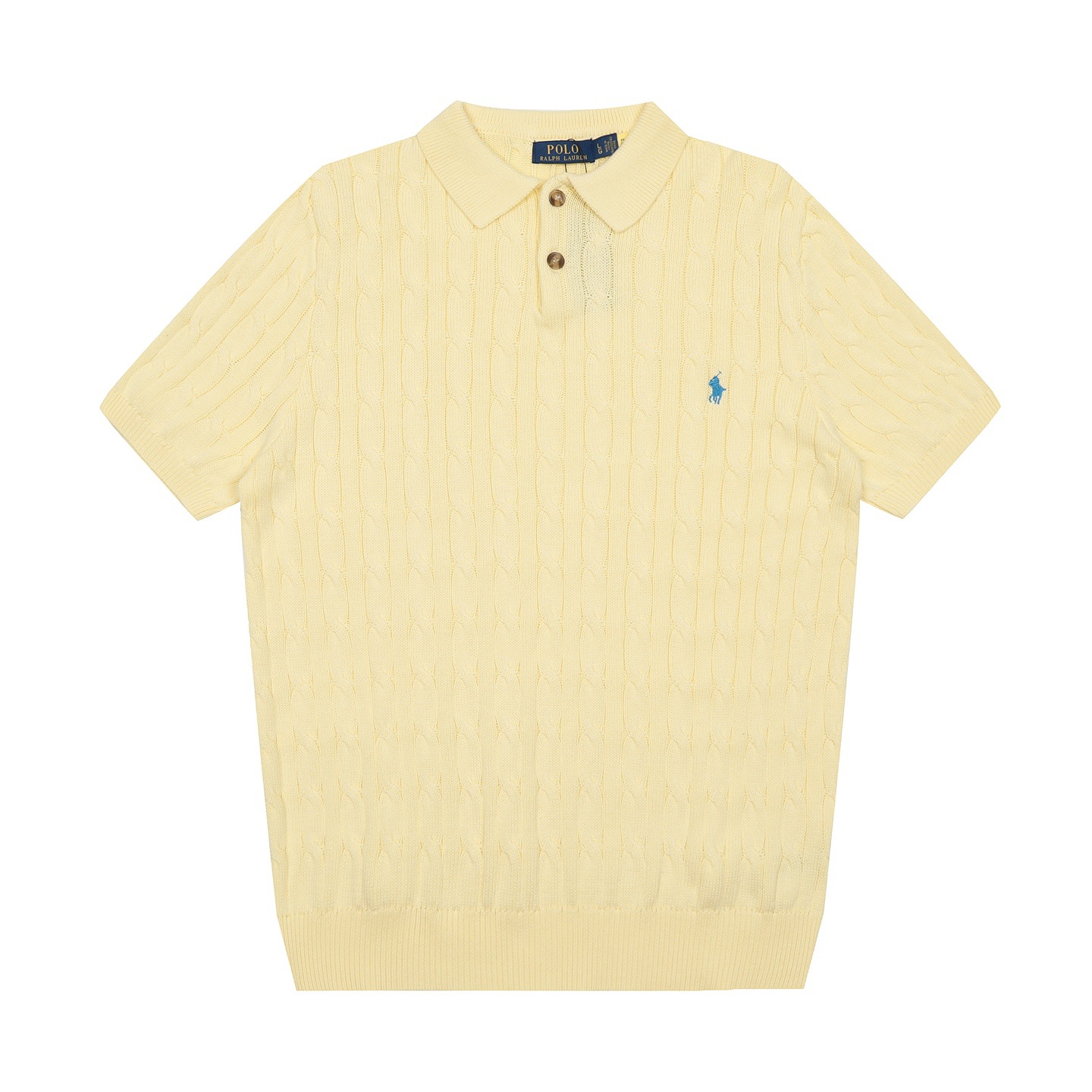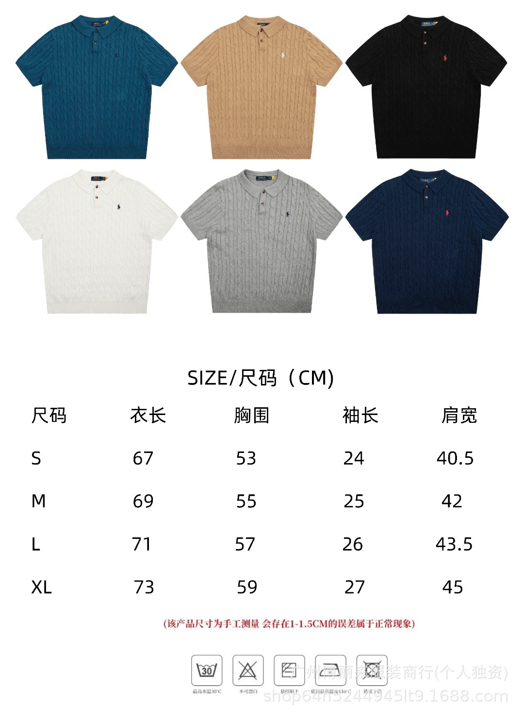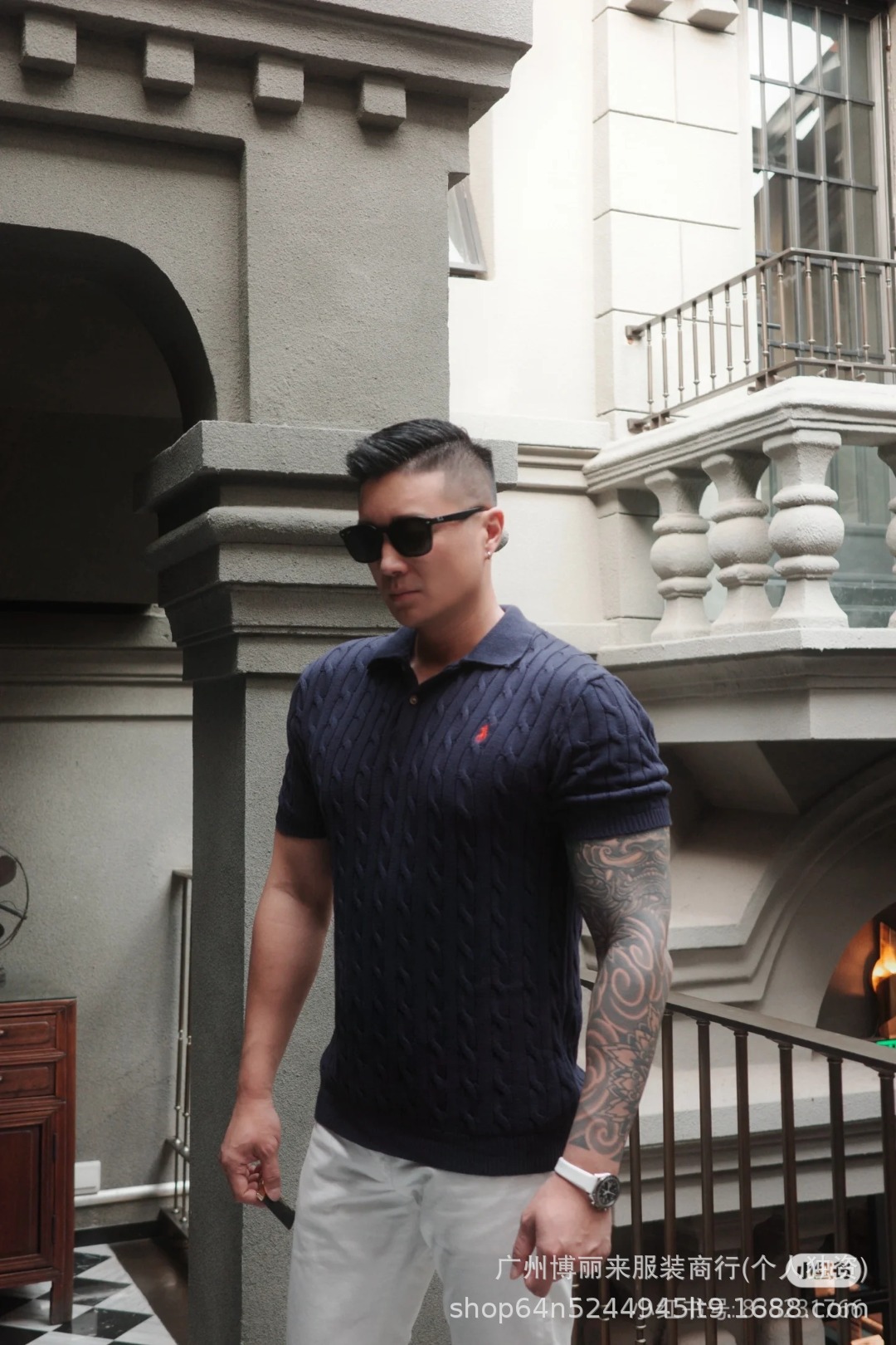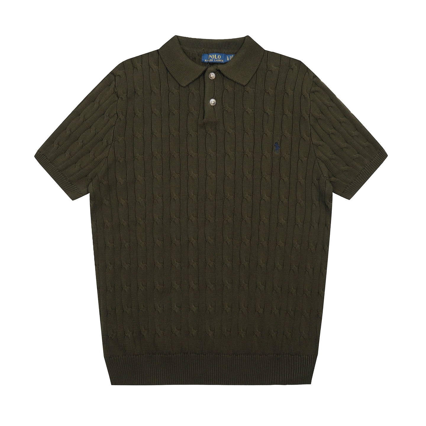 스윕 코드-RL 포니 로고 자수 옷깃 반팔 스웨터 트위스트 옷깃 간단한 티셔츠 재킷 생성