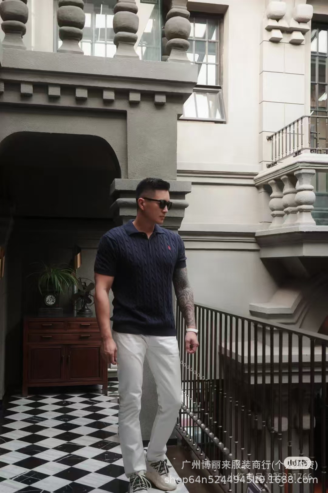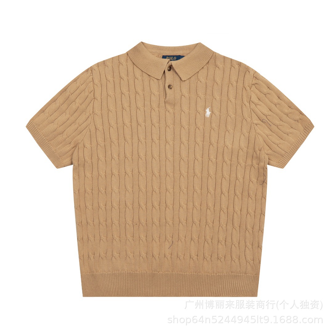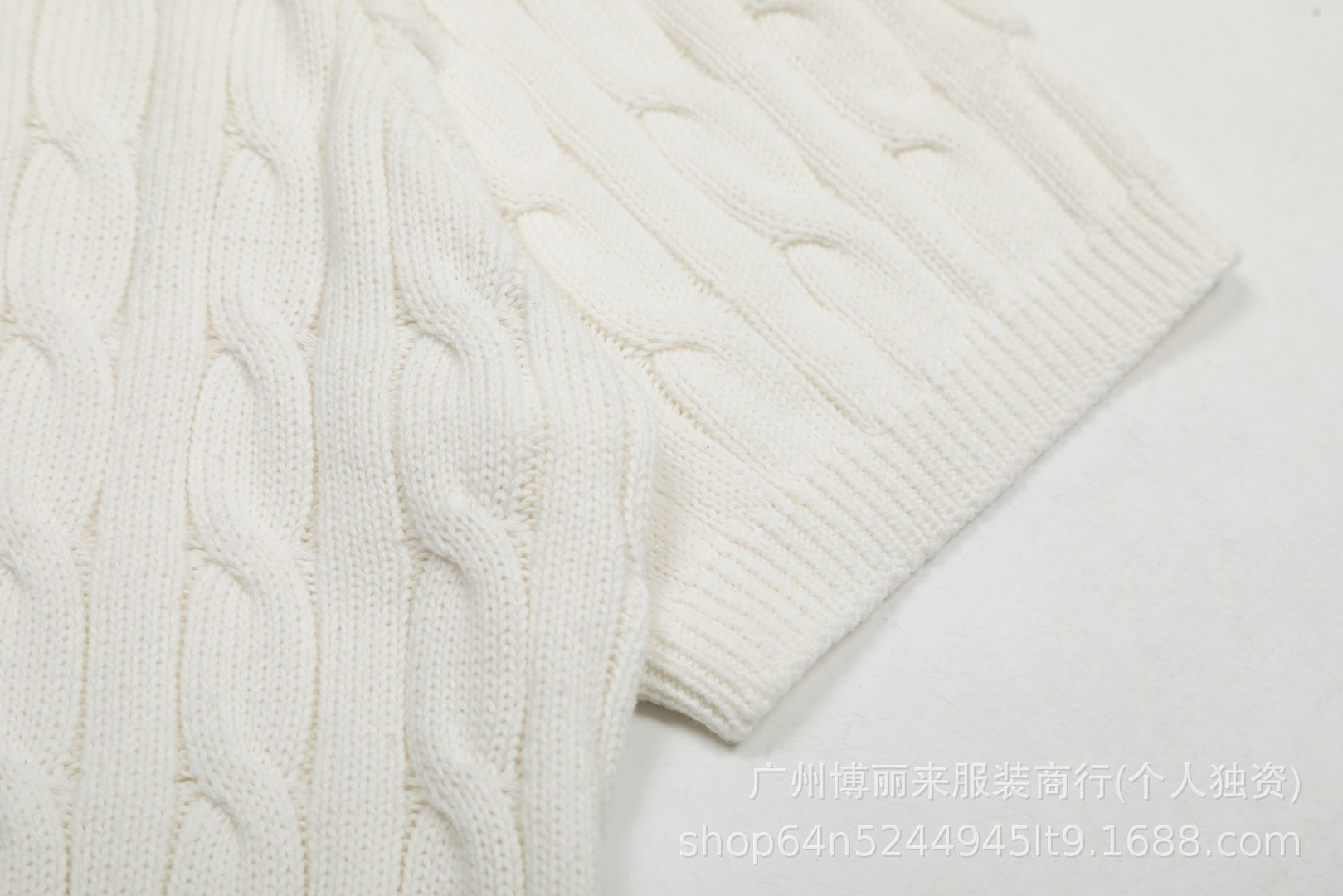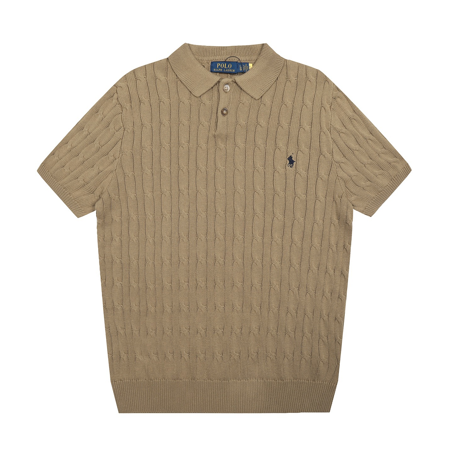 스윕 코드-RL 포니 로고 자수 옷깃 반팔 스웨터 트위스트 옷깃 간단한 티셔츠 재킷 생성