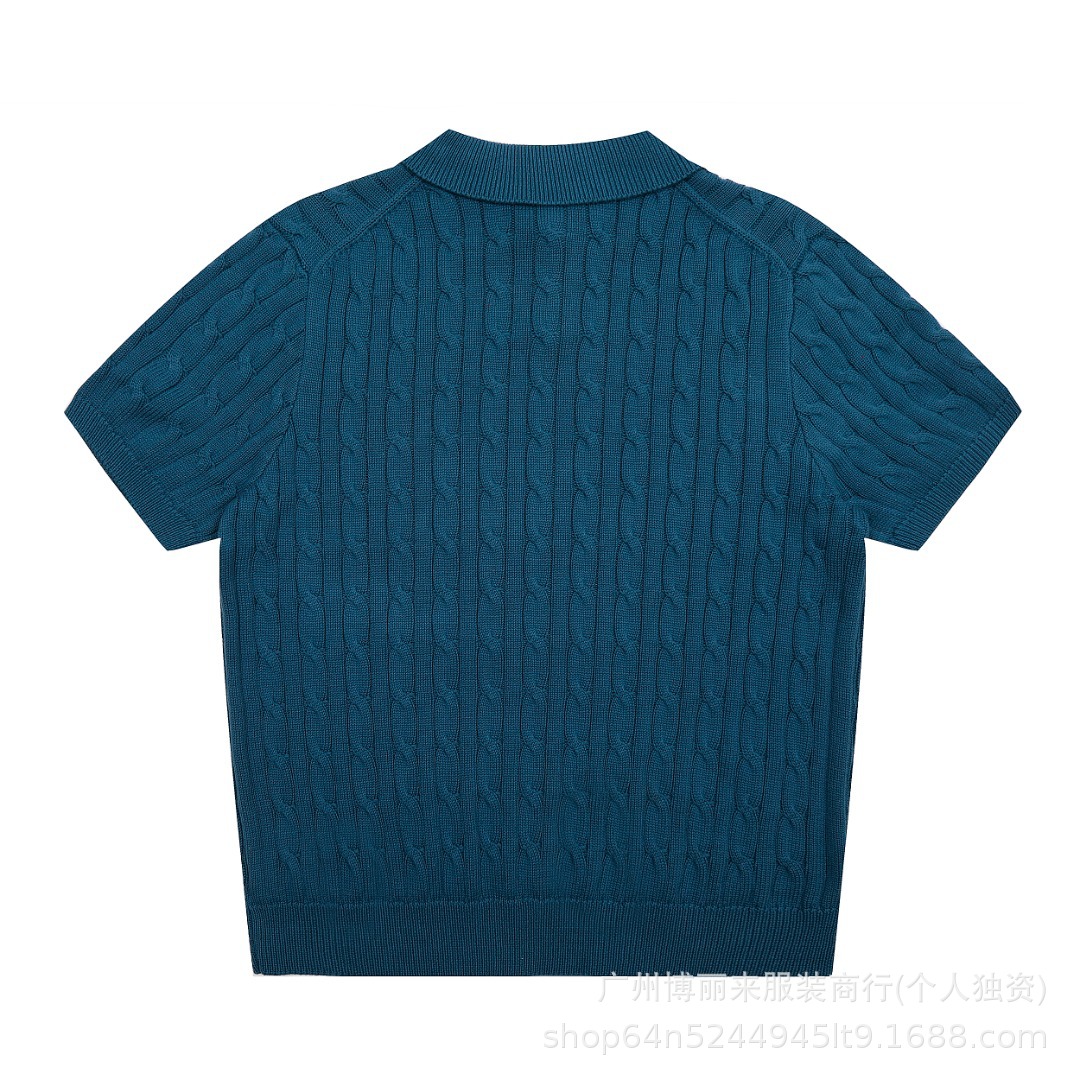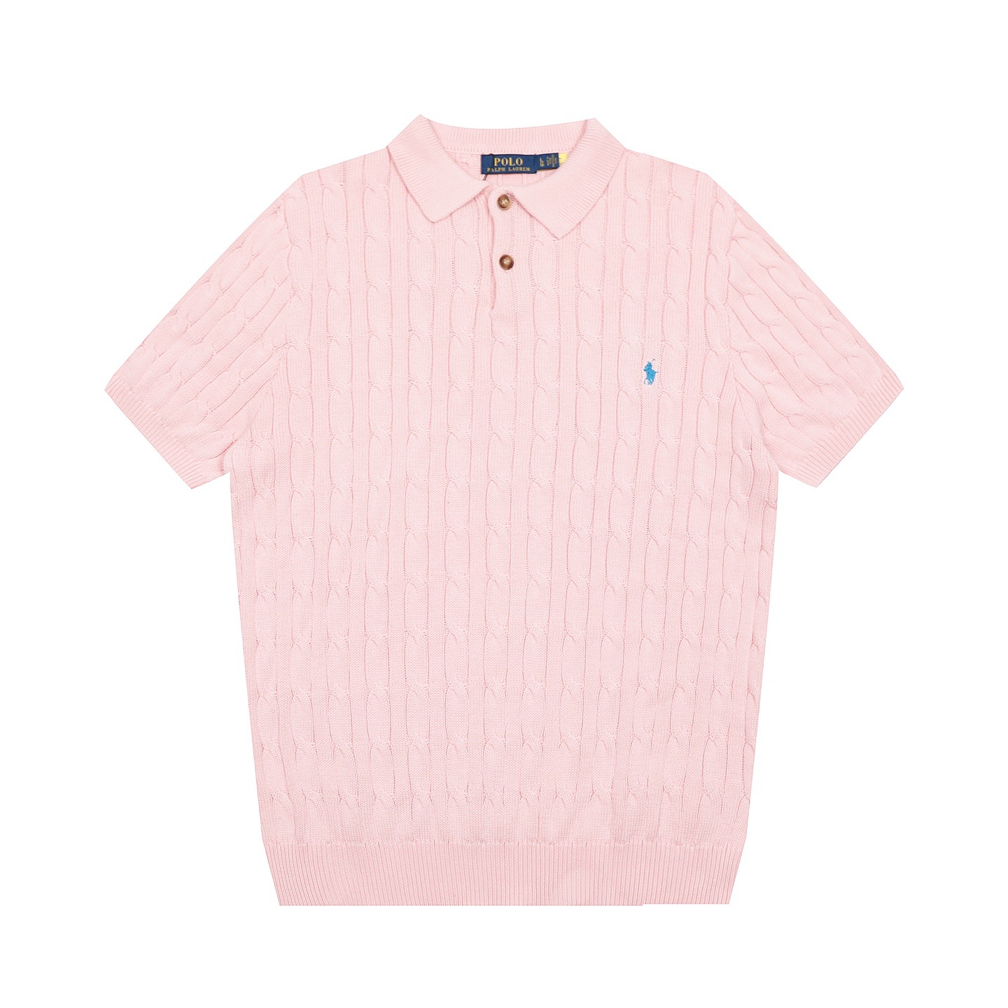 스윕 코드-RL 포니 로고 자수 옷깃 반팔 스웨터 트위스트 옷깃 간단한 티셔츠 재킷 생성스토어 가기