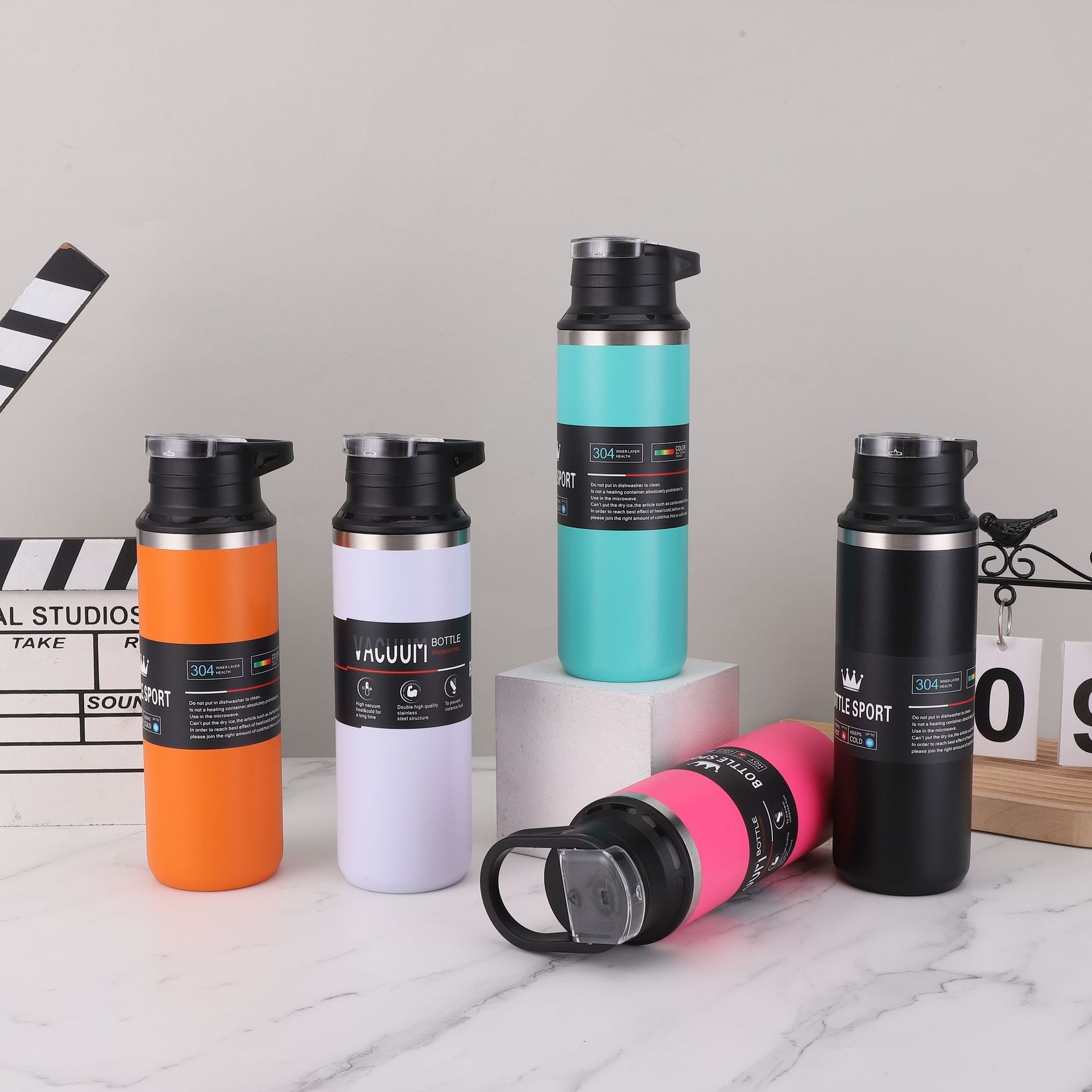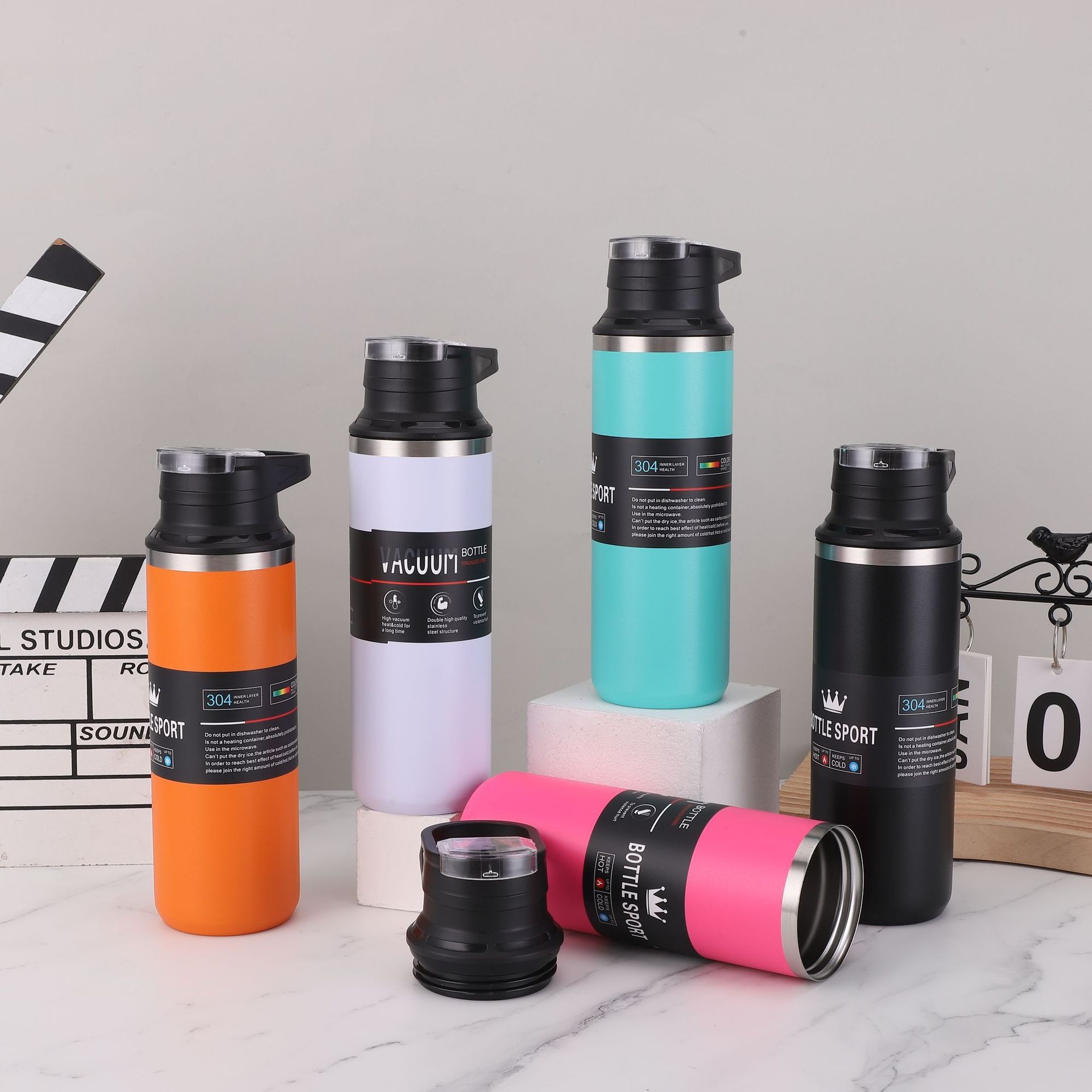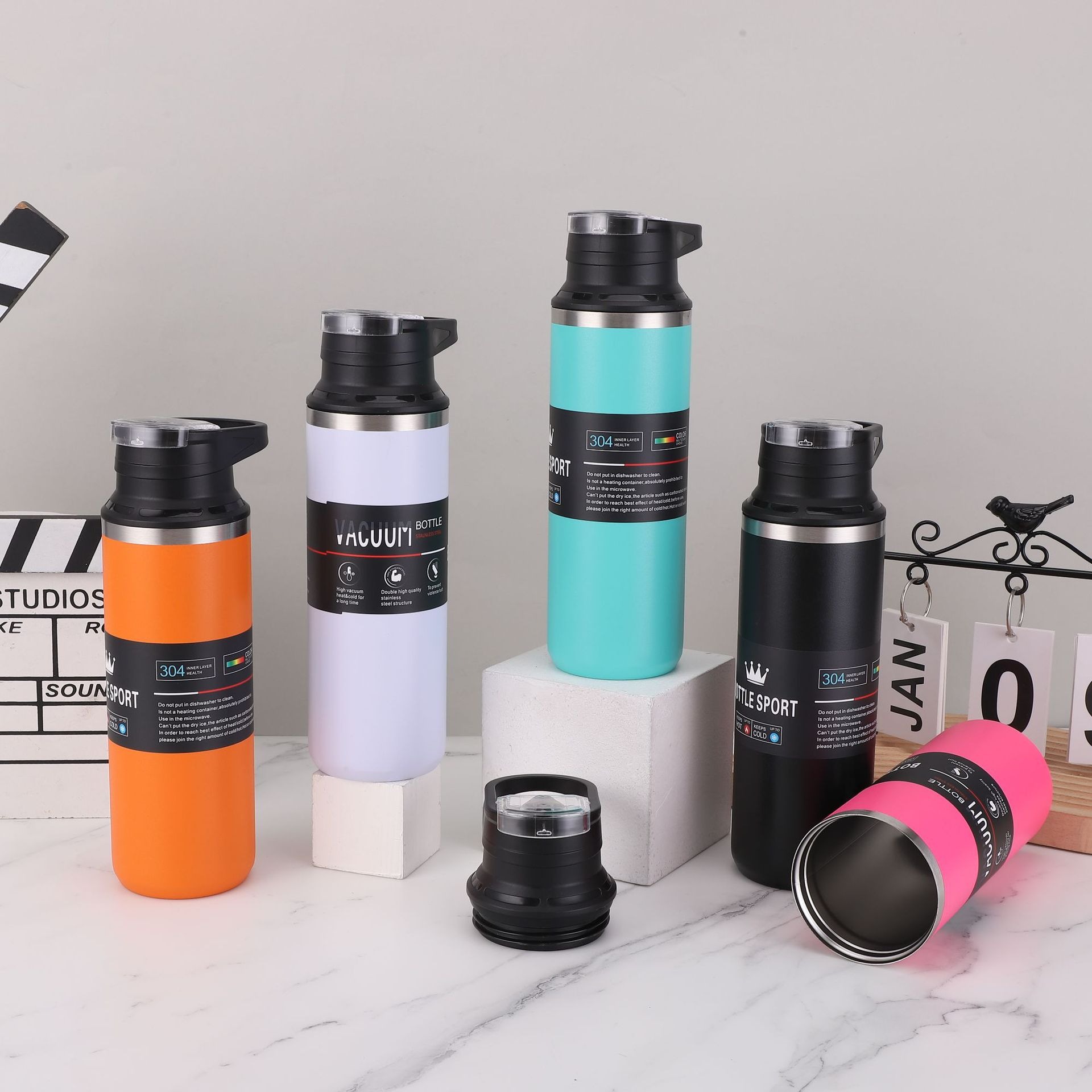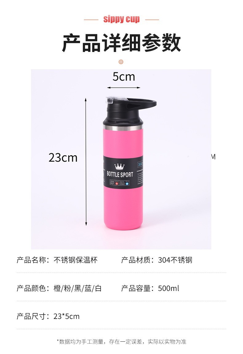 미국 304 스테인레스 스틸 휴대용 절연 컵 야외 등산 진공 이중층 스포츠 물병 500ml 크리 에이 티브 워터 컵