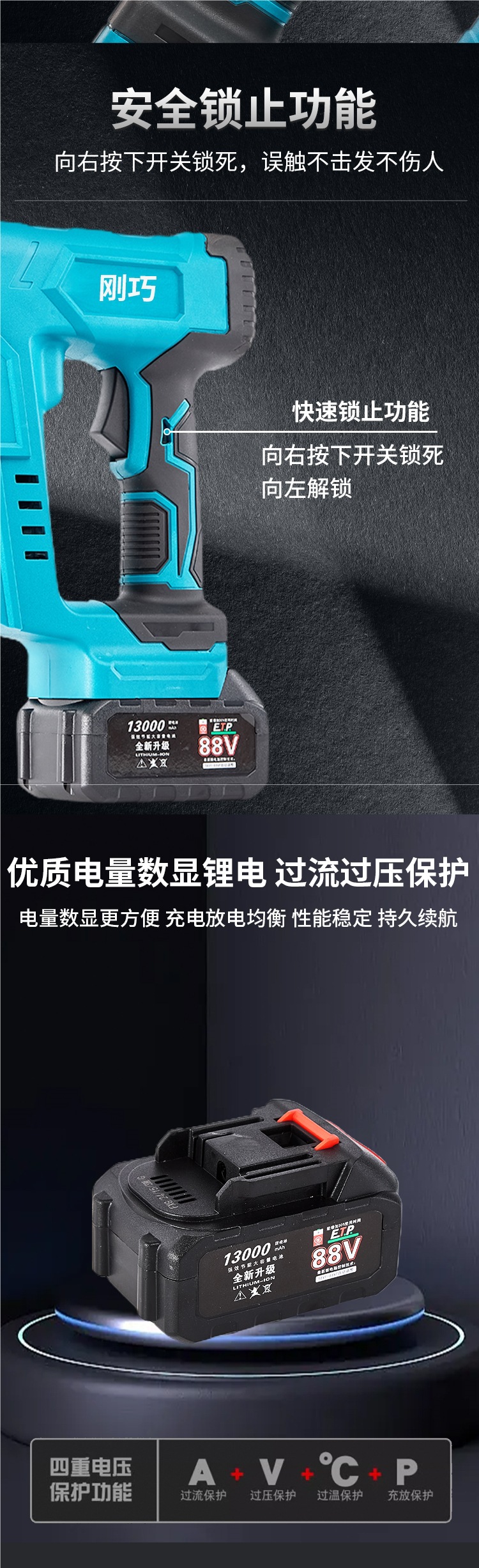 • 88v 배터리 1개와 플라스틱 충전 상자 1개가 포함된 1022-F 1.5kg