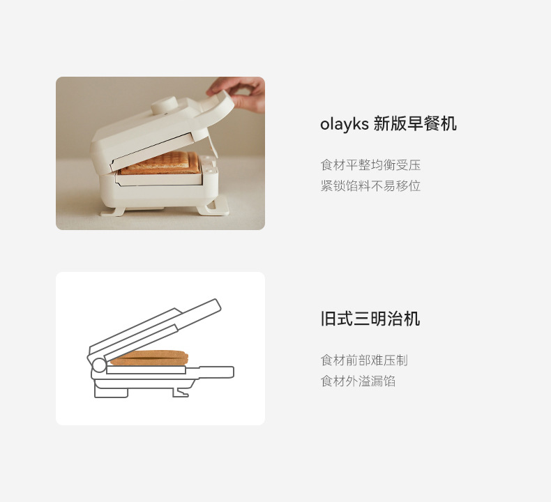 Olayks 인스턴트 샌드위치 기계 타이머 아침 식사 기계 가정용 소형 다기능 와플 토스트 기계 빵 기계