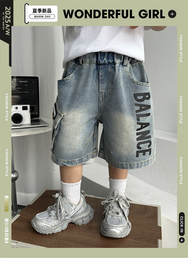 여름 청바지 소년 여름 반바지 어린이 반바지 느슨한 2025 새로운 작업복 바지 아기 여름 스타일