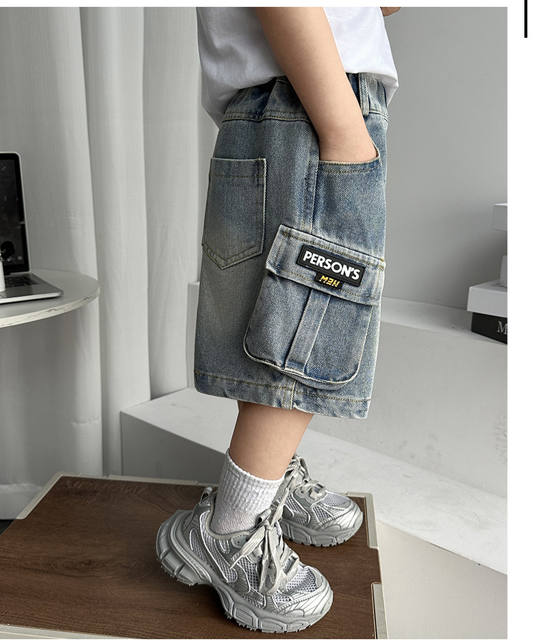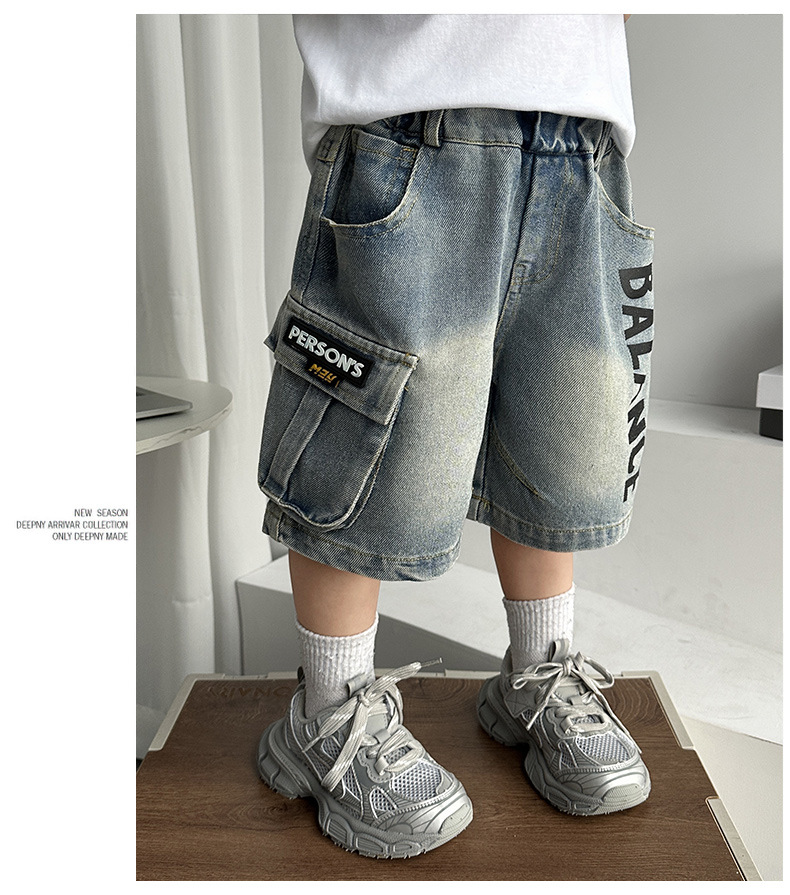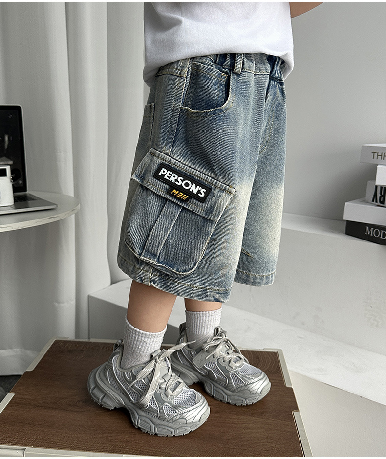 여름 청바지 소년 여름 반바지 어린이 반바지 느슨한 2025 새로운 작업복 바지 아기 여름 스타일스토어 가기