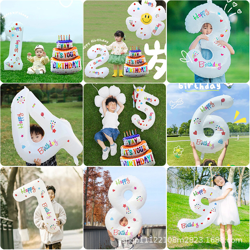 32inch 인쇄 생일 번호 풍선 한 살짜리 사진 소품 소년과 소녀 파티 생일 장면 장식 배열스토어 가기