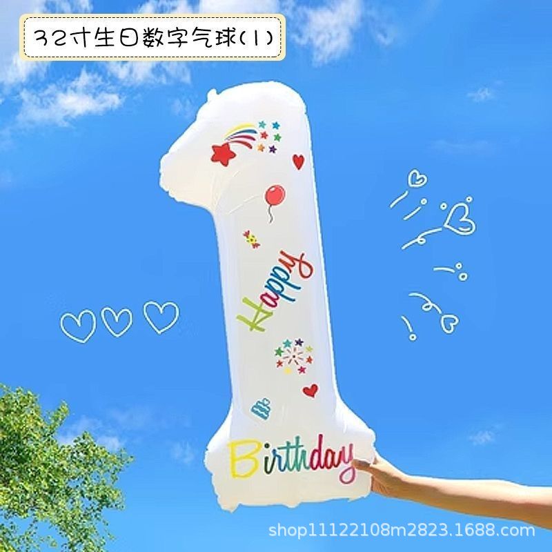 32inch 인쇄 생일 번호 풍선 한 살짜리 사진 소품 소년과 소녀 파티 생일 장면 장식 배열