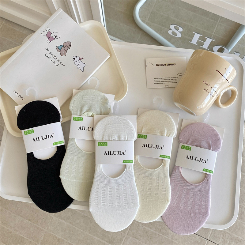 양말 여성의 봄과 여름 얇은 모달 코튼 뼈없는 미끄럼 방지 및 낙하 방지 보트 양말 통기성 보이지 않는 여성용 충격 양말스토어 가기