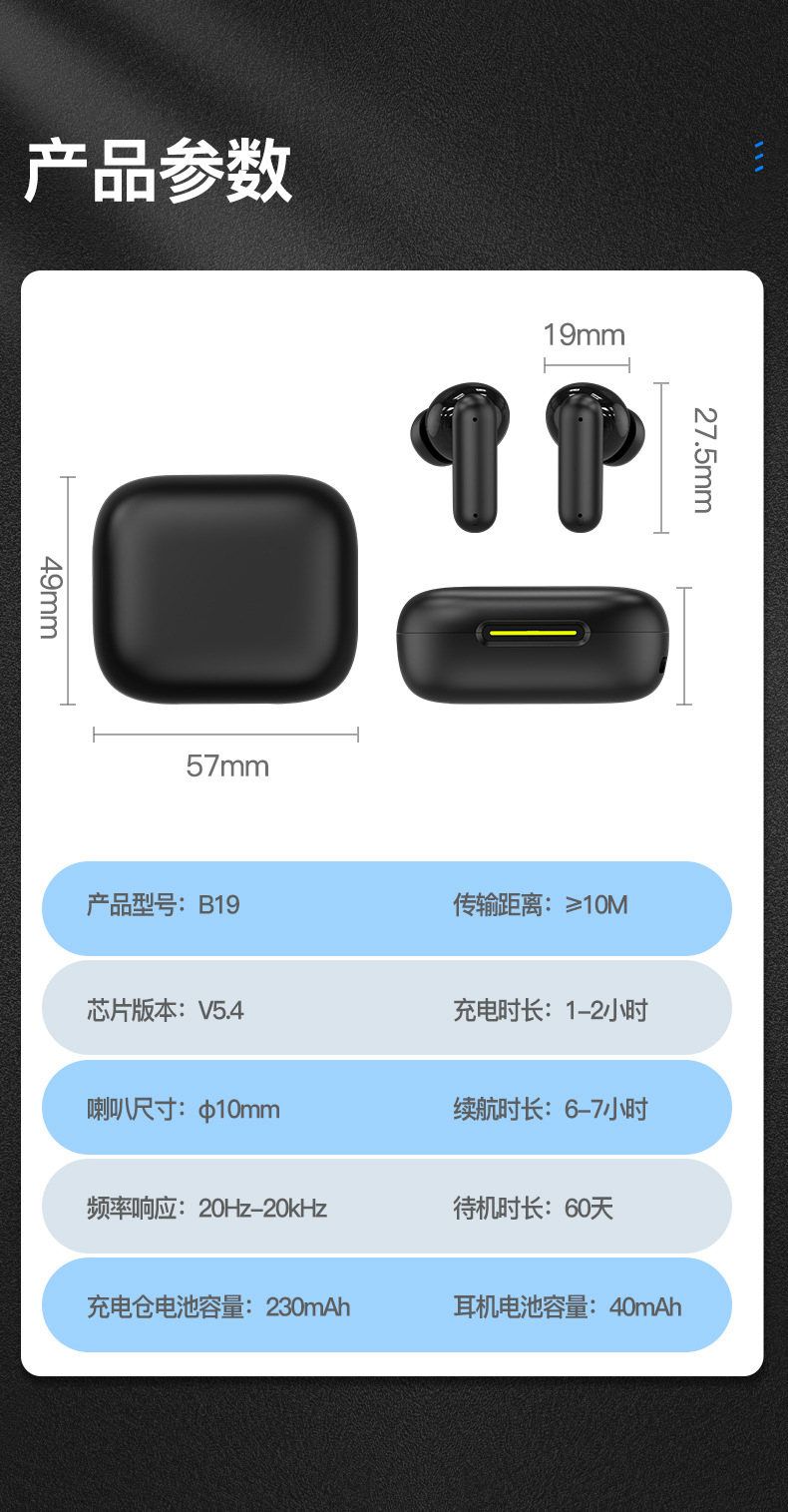 국경을 넘는 신제품 B19 진정한 무선 블루투스 이어폰 터치 컨트롤 초장시간 배터리 수명 고화질 통화 음질 소음 감소 이어폰