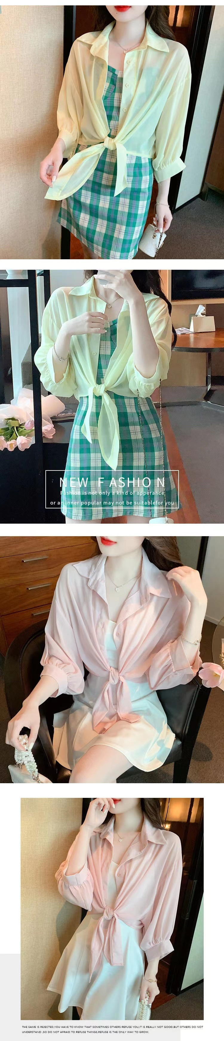 配吊带裙子雪纺衫小披肩薄款衬衫开衫防晒上衣女2024新款夏季外搭