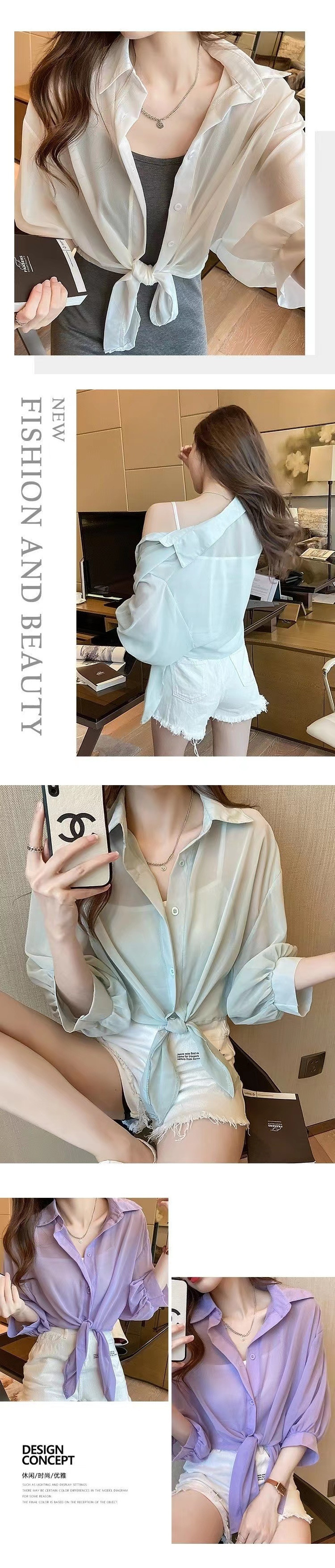 슬립 스커트, 쉬폰 셔츠, 숄, 얇은 셔츠, 가디건, 자외선 차단 탑, 여성용 2024 신상 여름 아우터