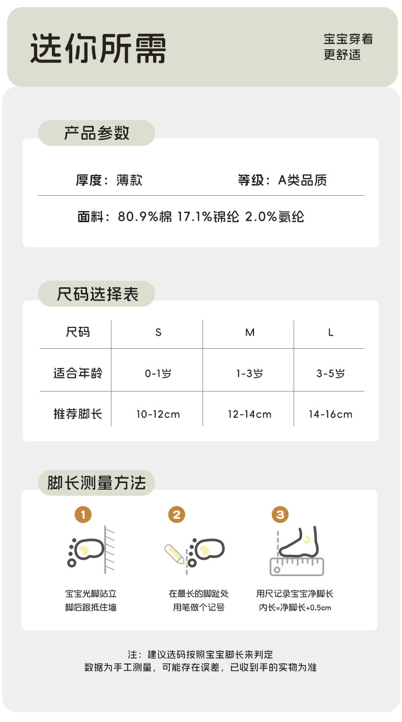尺码:S码(0-1岁)、M码(1-3岁)、L码(3-5岁)