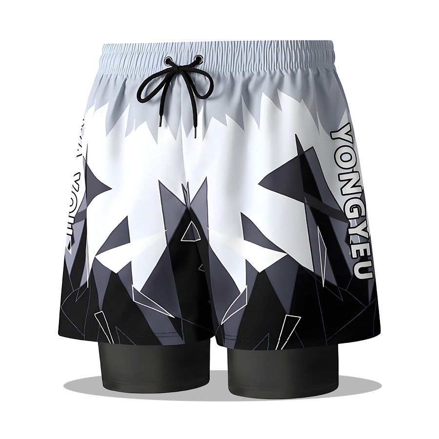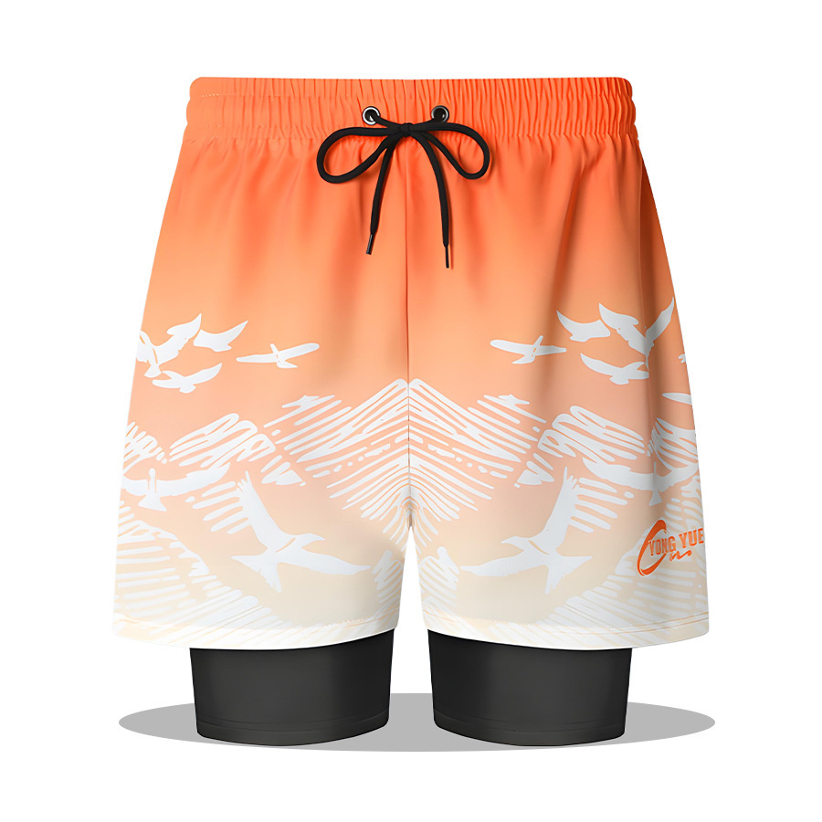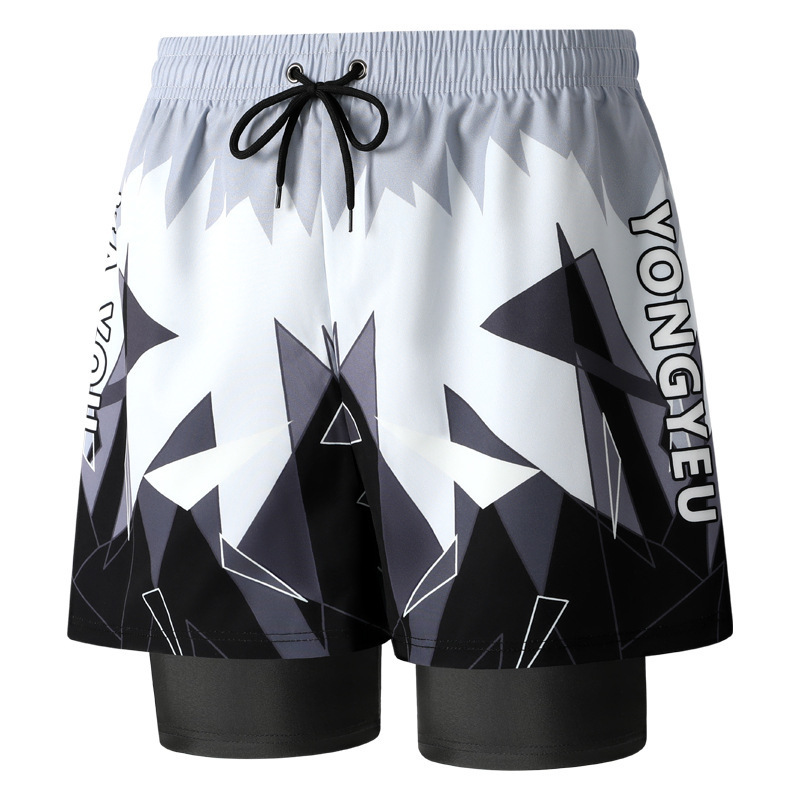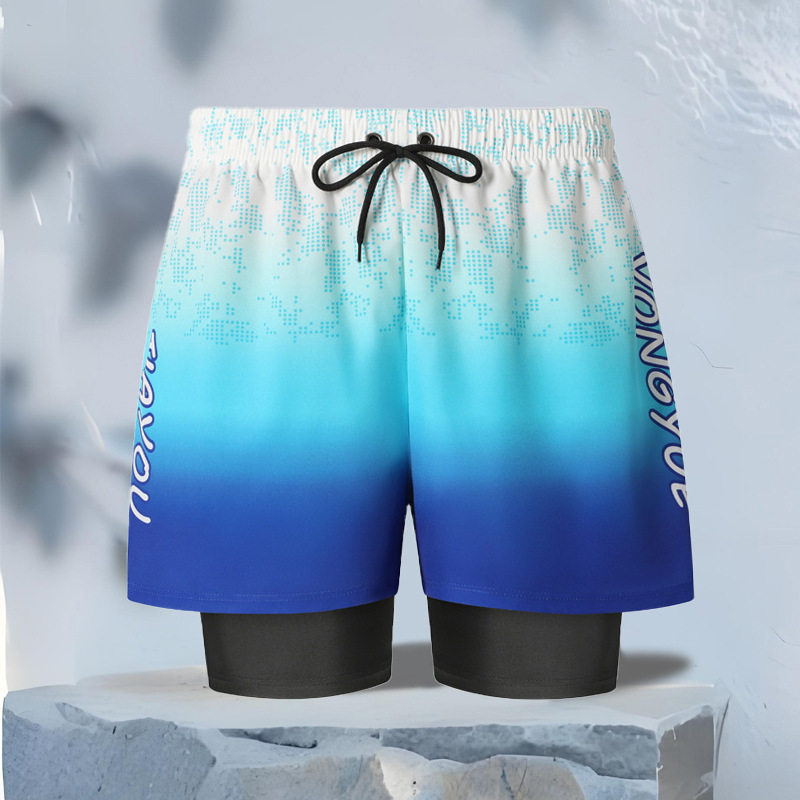 남성 수영복 더블 레이어 안티-불편 해변 바지 2025 새로운 느슨한 대형 속건성 수영복 남성 온천 수영복스토어 가기