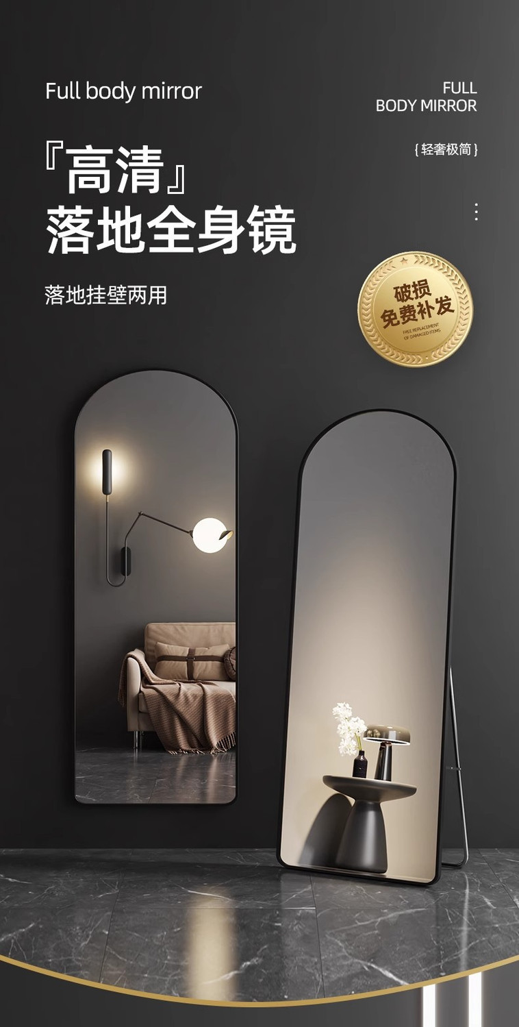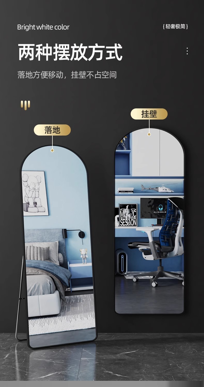 드레스 미러 프렌치 스타일 레트로 미러 네트 인기있는 하이 레벨 풀 길이 미러 라이트 럭셔리 플로어 미러 홈 벽 장착 피팅 미러스토어 가기