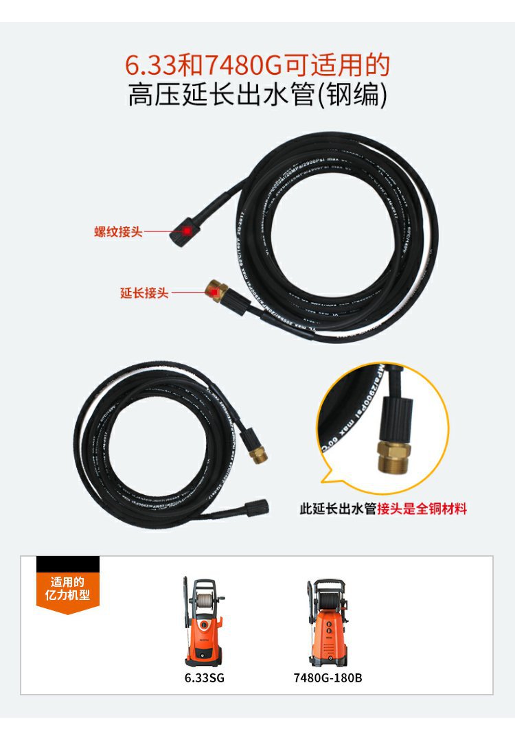 Yili 자동차 세탁기 고압 출구 파이프 연장 파이프 피팅 물 펌프 10 미터 4 시리즈 5 시리즈 스틸 와이어 원래 수도관스토어 가기