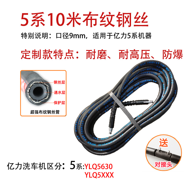 Yili 자동차 세탁기 고압 출구 파이프 연장 파이프 피팅 물 펌프 10 미터 4 시리즈 5 시리즈 스틸 와이어 원래 수도관