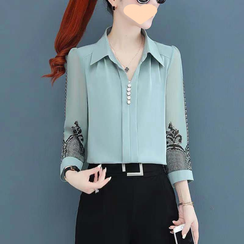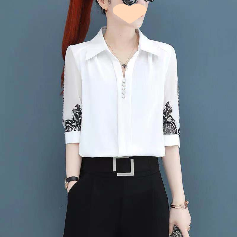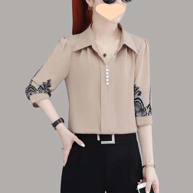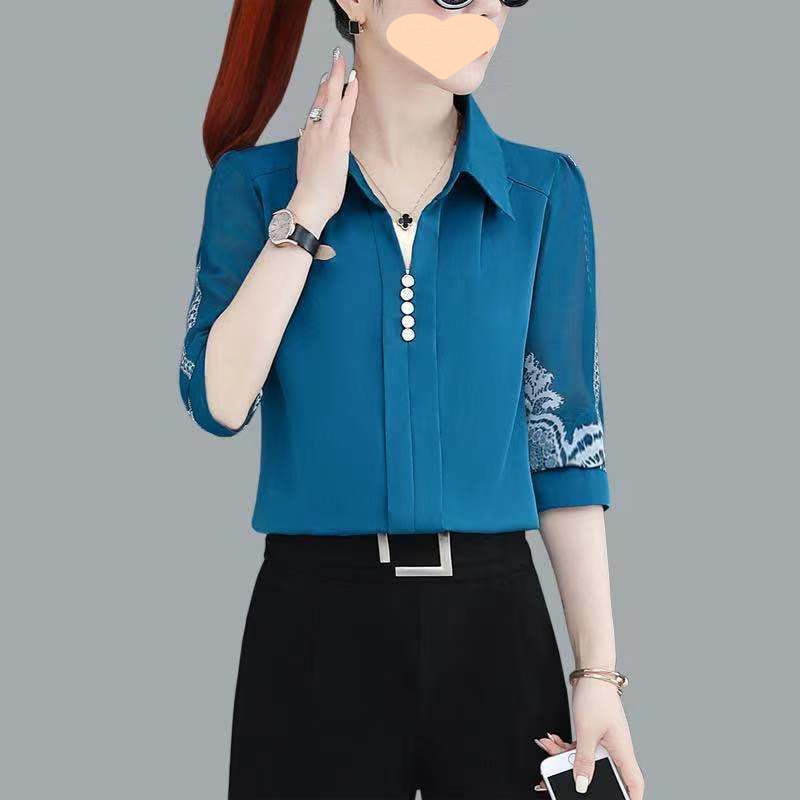 어머니의 중간 소매 쉬폰 셔츠 2025 새로운 여름 패션 칙 탑 여성의 세련된 배 덮개 셔츠 여름스토어 가기