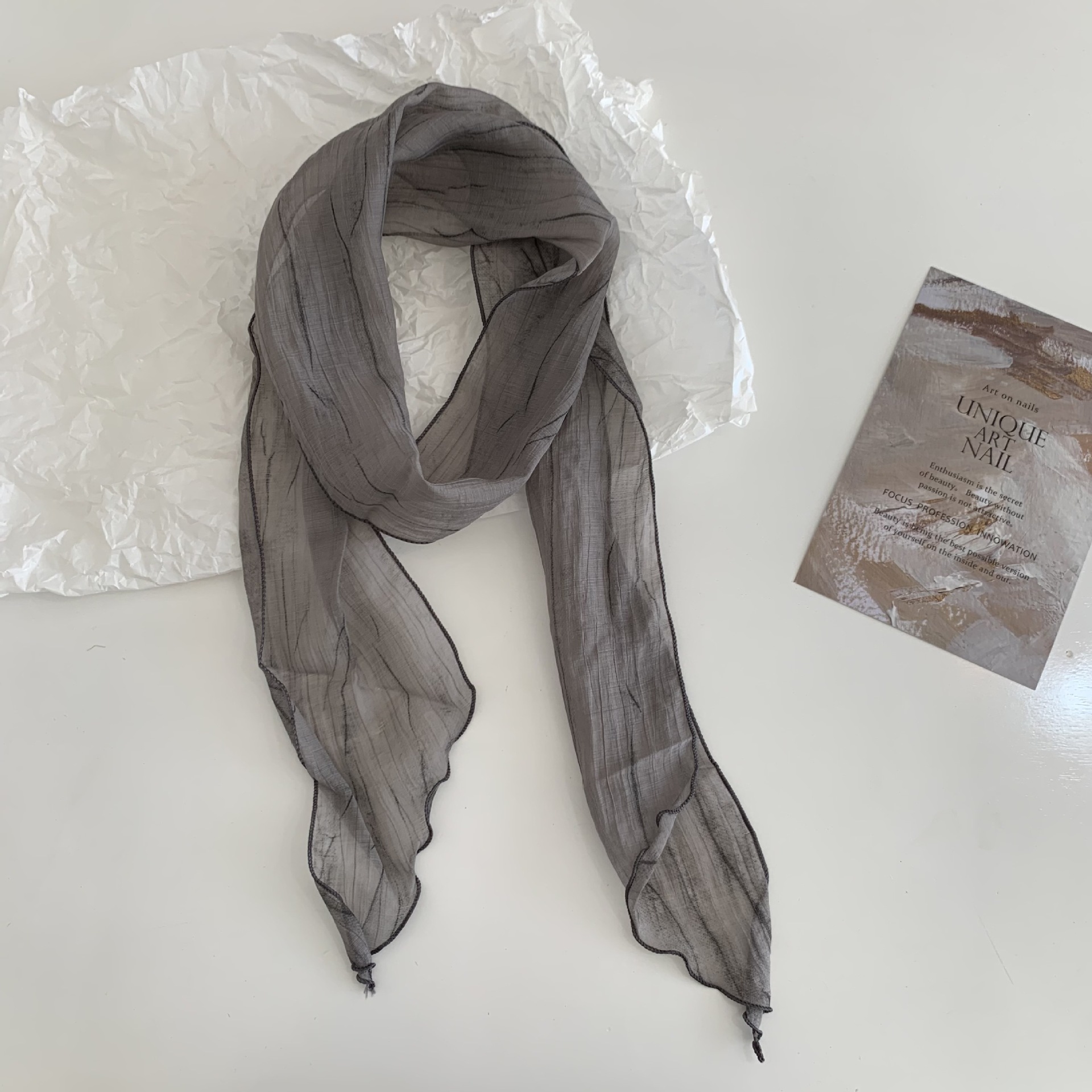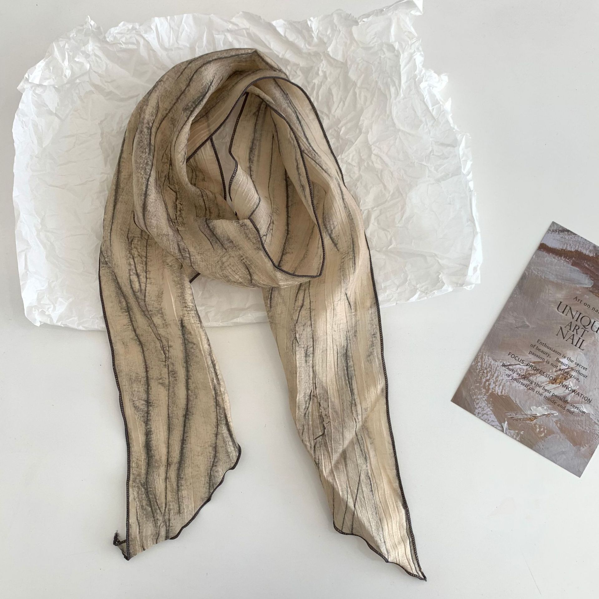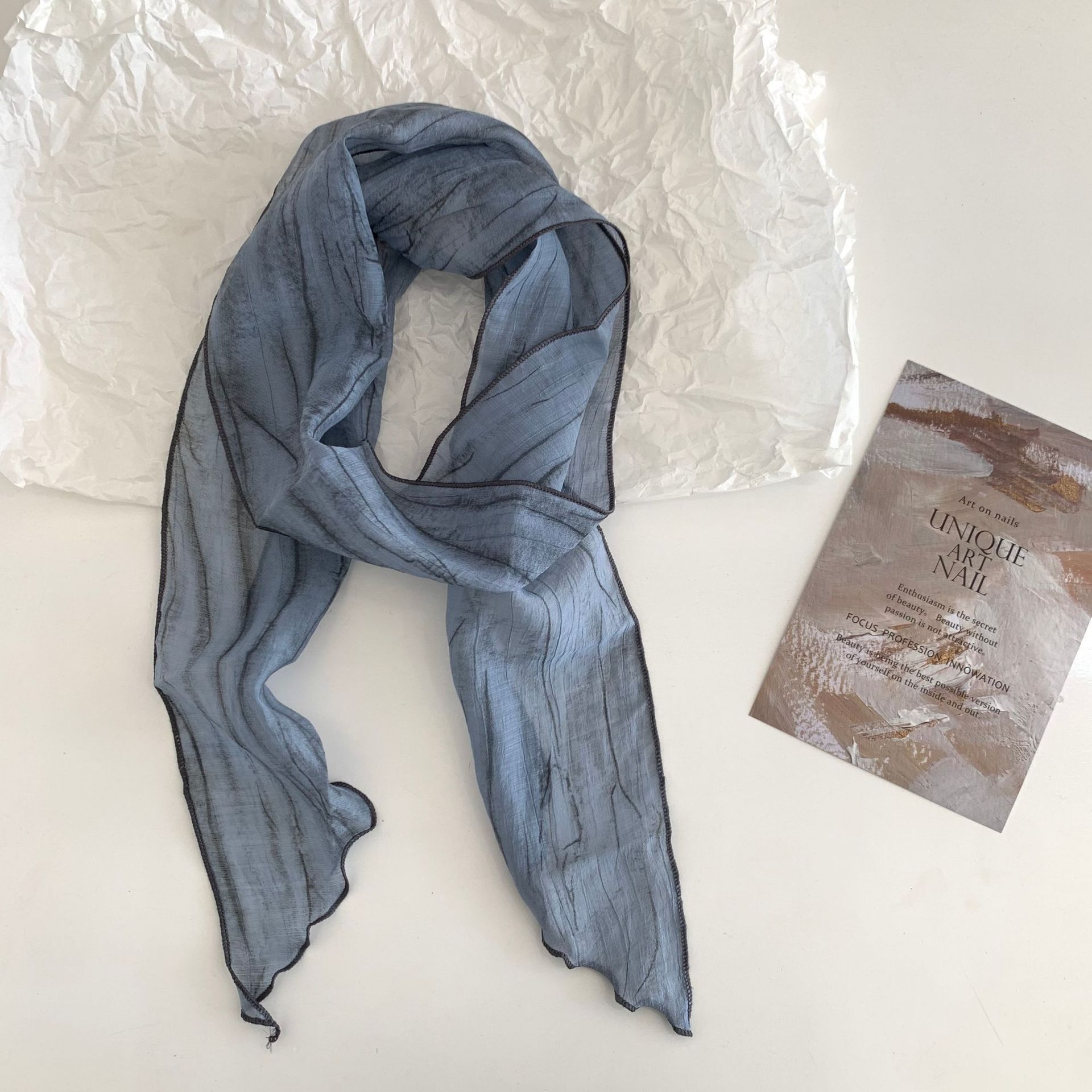 시원한 느낌 ~ 넥타이 염색 줄무늬 날씬한 작은 리본 여성의 여름 선 스크린 목 스카프 작은 스카프 조커 작은 스카프