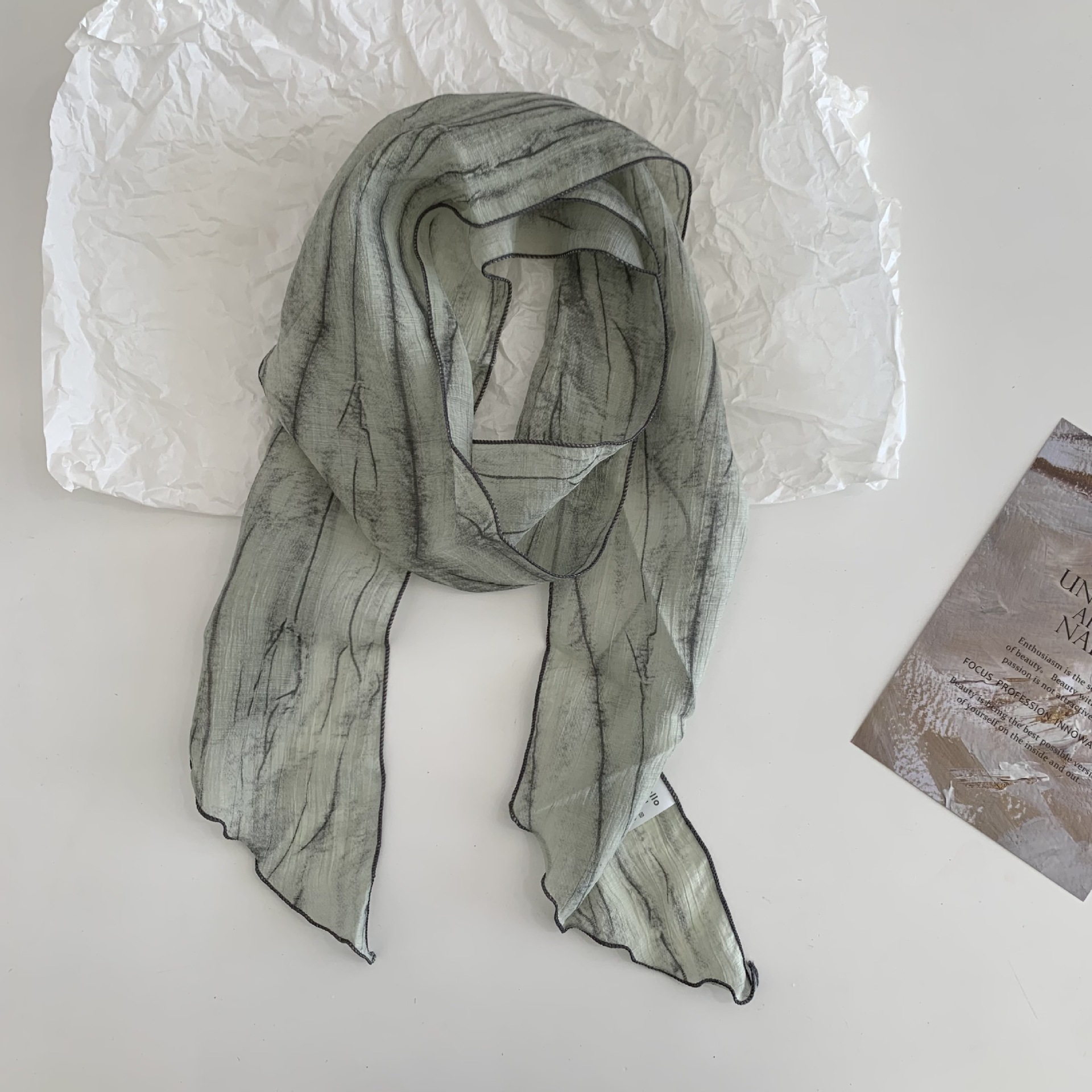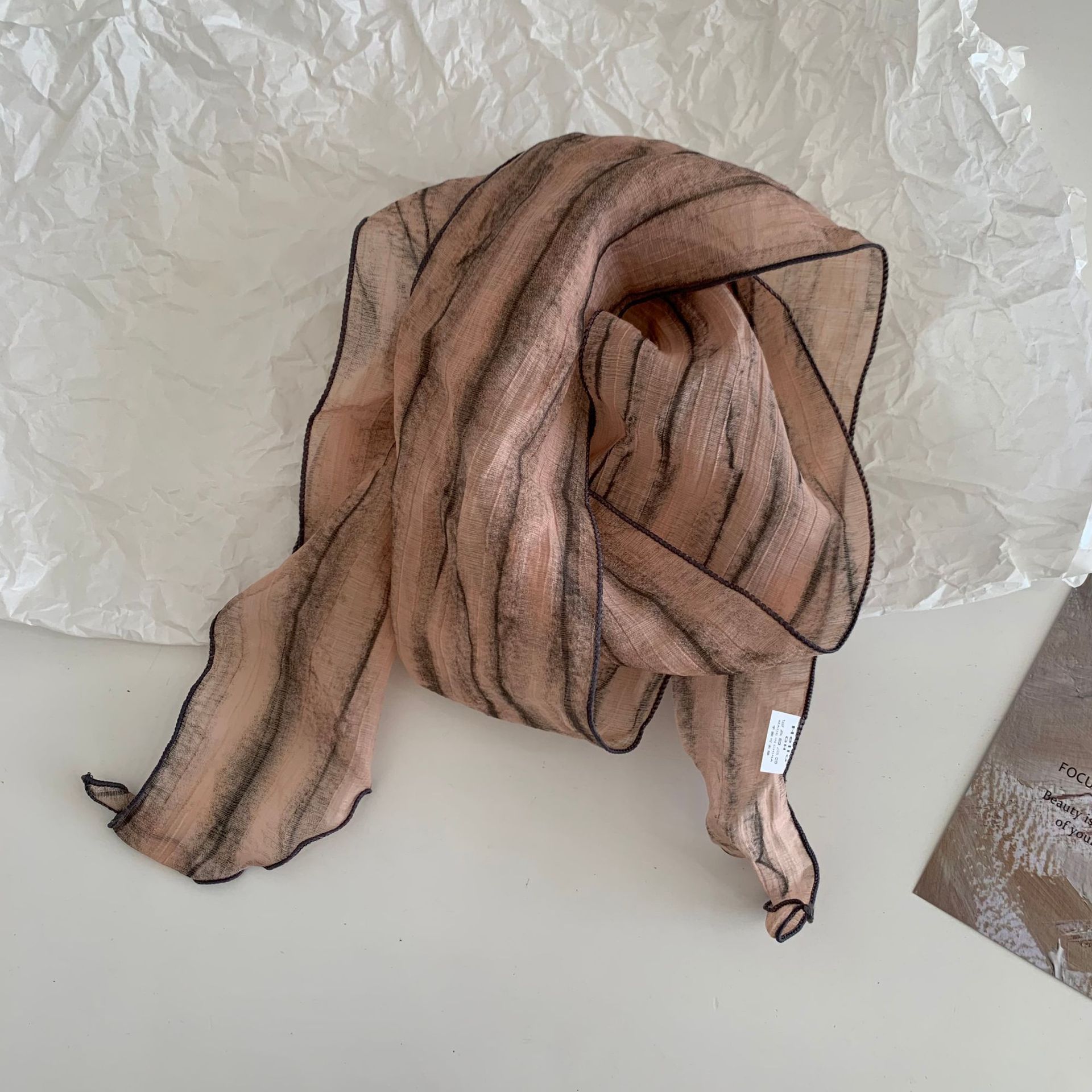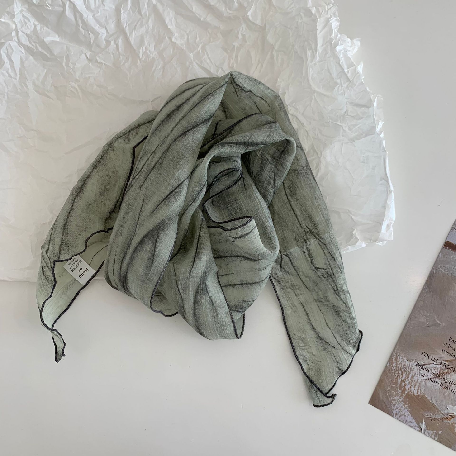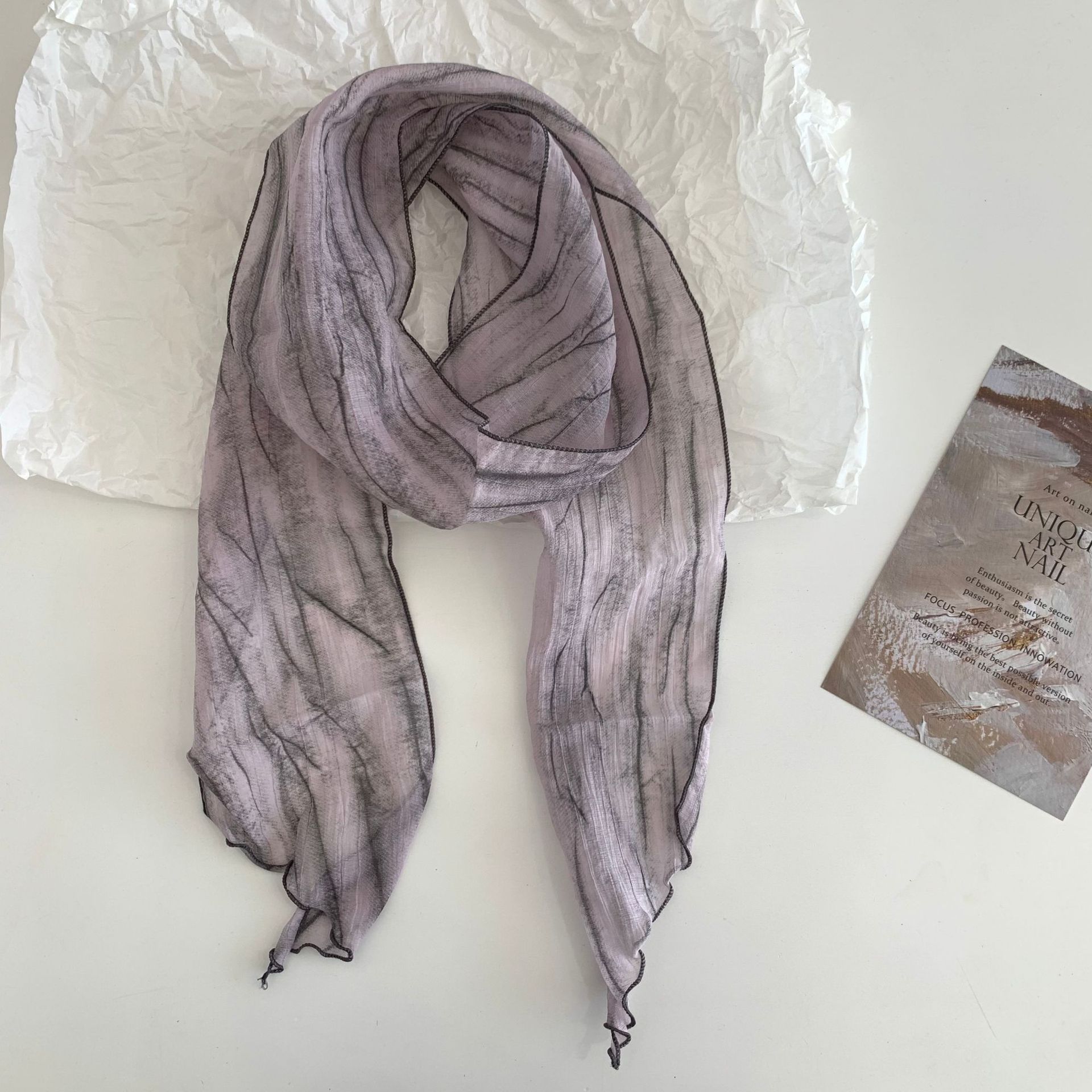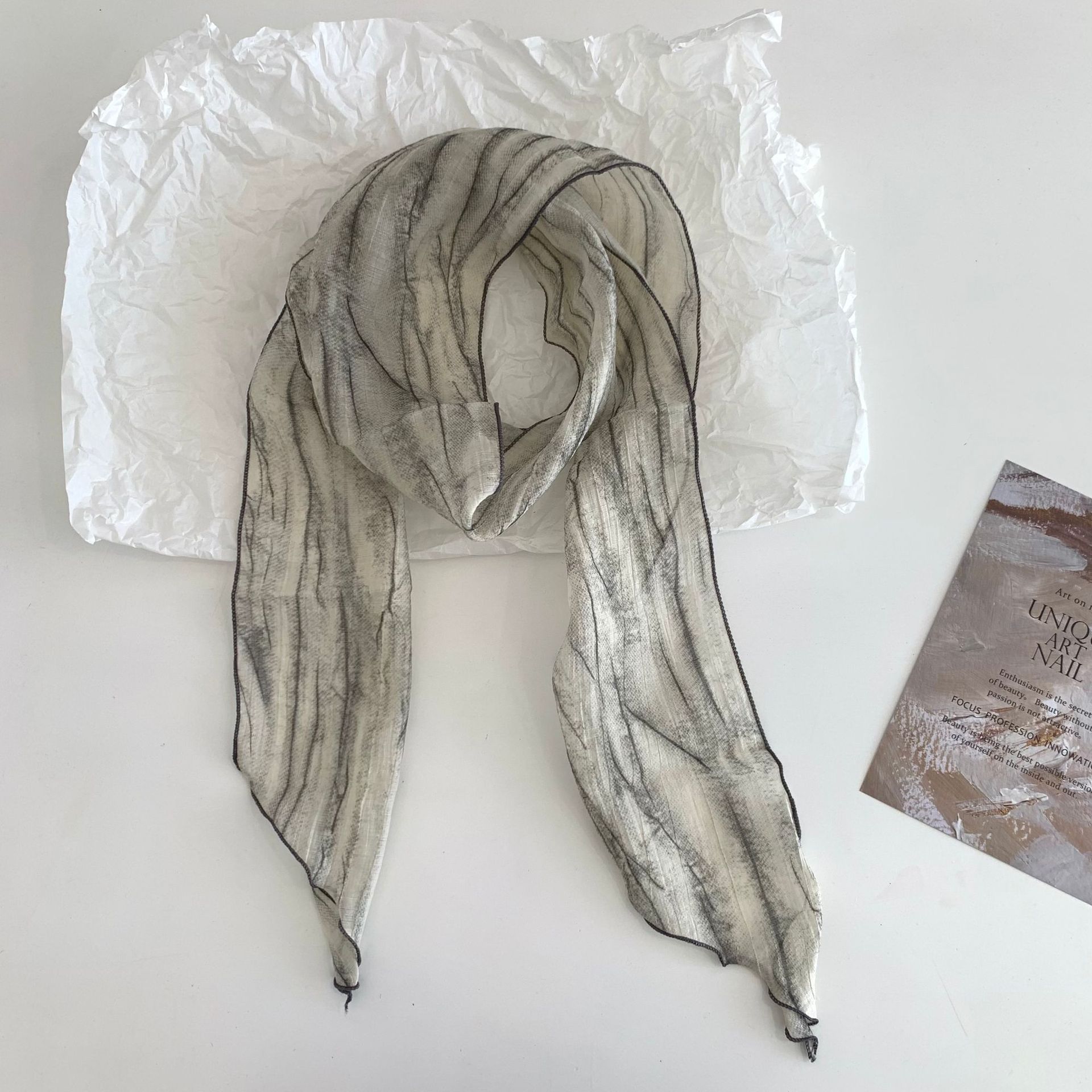 시원한 느낌 ~ 넥타이 염색 줄무늬 날씬한 작은 리본 여성의 여름 선 스크린 목 스카프 작은 스카프 조커 작은 스카프스토어 가기