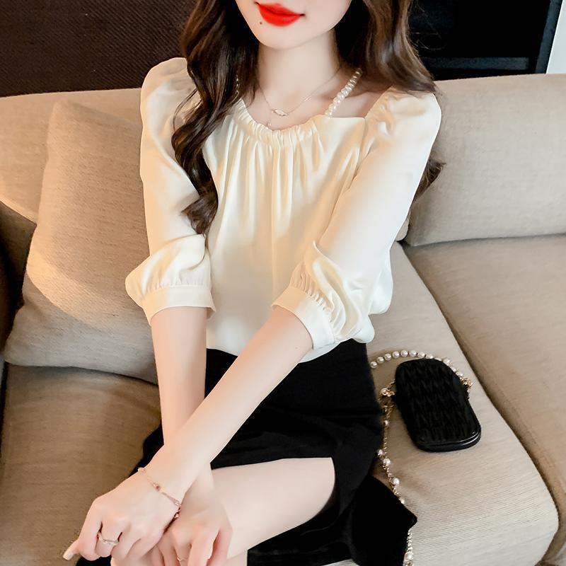 2025 년 봄과 여름 여성을위한 목을 매달린 섹시 긴팔 쉬폰 셔츠 여름 우아한 올매치 5 소매 셔츠 탑스토어 가기