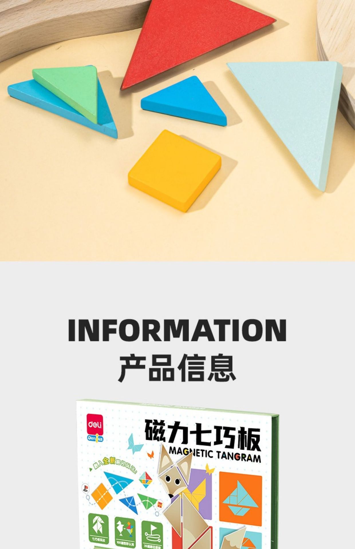 델리 YQ127 초등학생을 위한 Tangram 퍼즐, 교육용 어린이 버전, 나무 아기 장난감, 무지개 퍼즐스토어 가기
