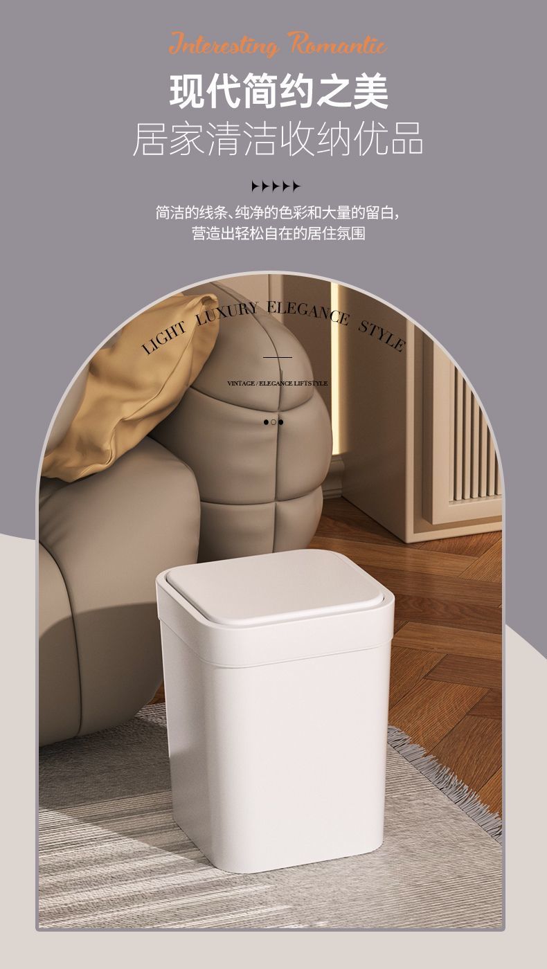 】 가정용 거실, 주방, 욕실용 탄성 뚜껑 사각형 쓰레기통 대형 프레스 링 크리에이티브 침실 화장지 바구니