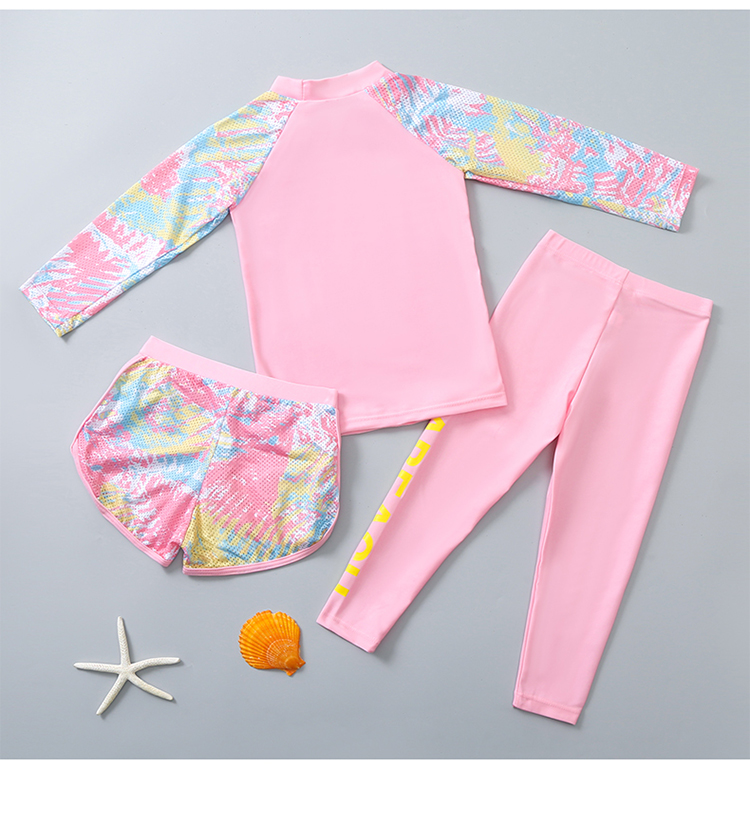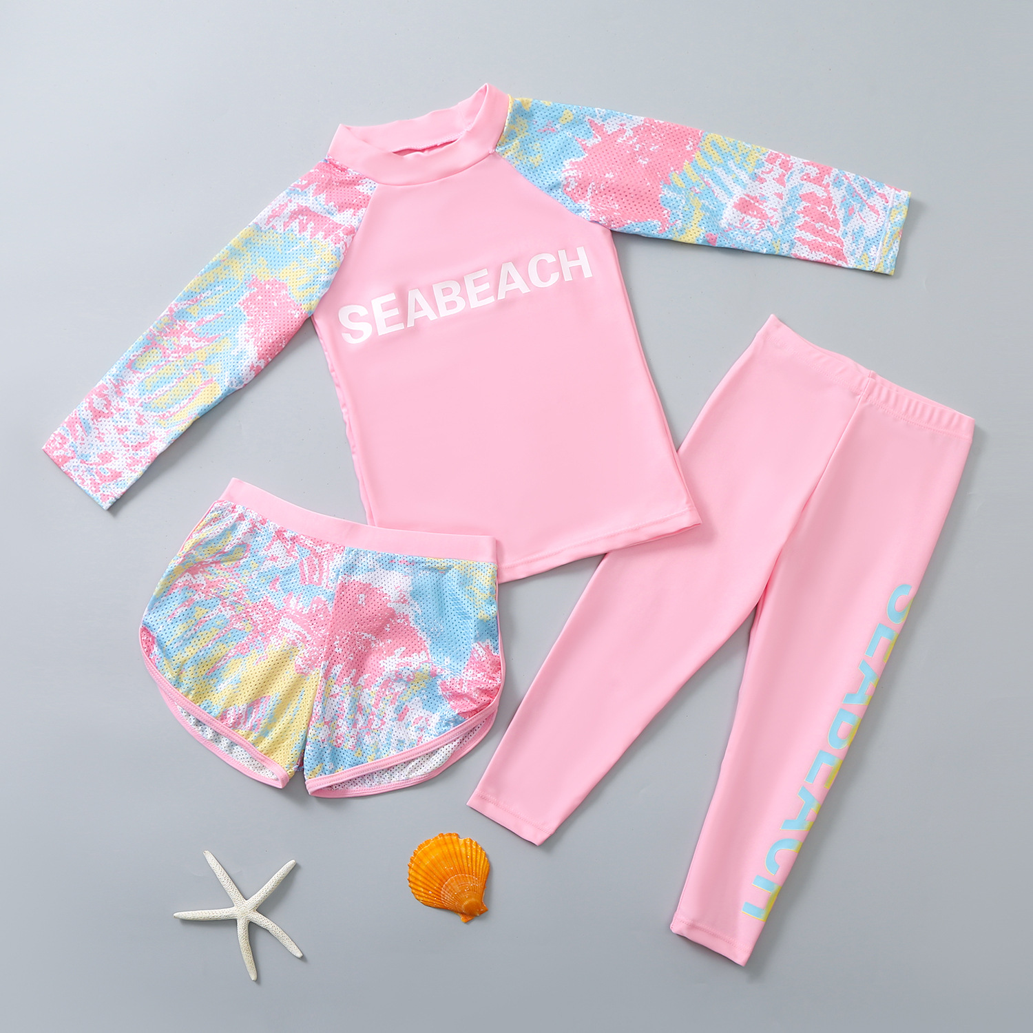 긴팔 속건 소녀 스포츠 아동 수영복 스플릿 학생 수영복 3 피스 자외선 차단제 2024 새로운 한국어