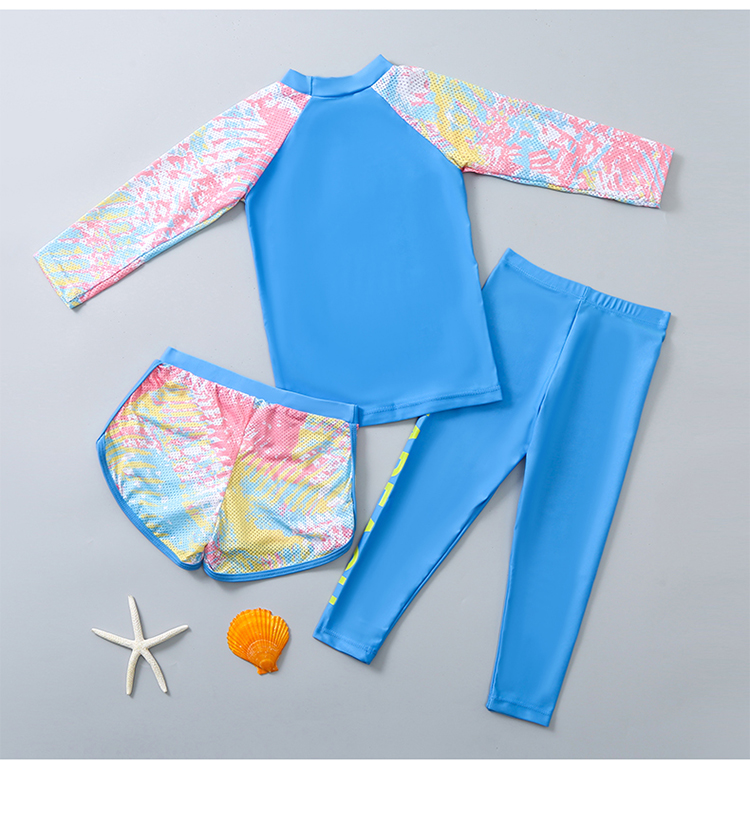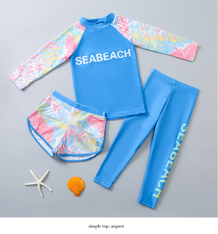 긴팔 속건 소녀 스포츠 아동 수영복 스플릿 학생 수영복 3 피스 자외선 차단제 2024 새로운 한국어스토어 가기