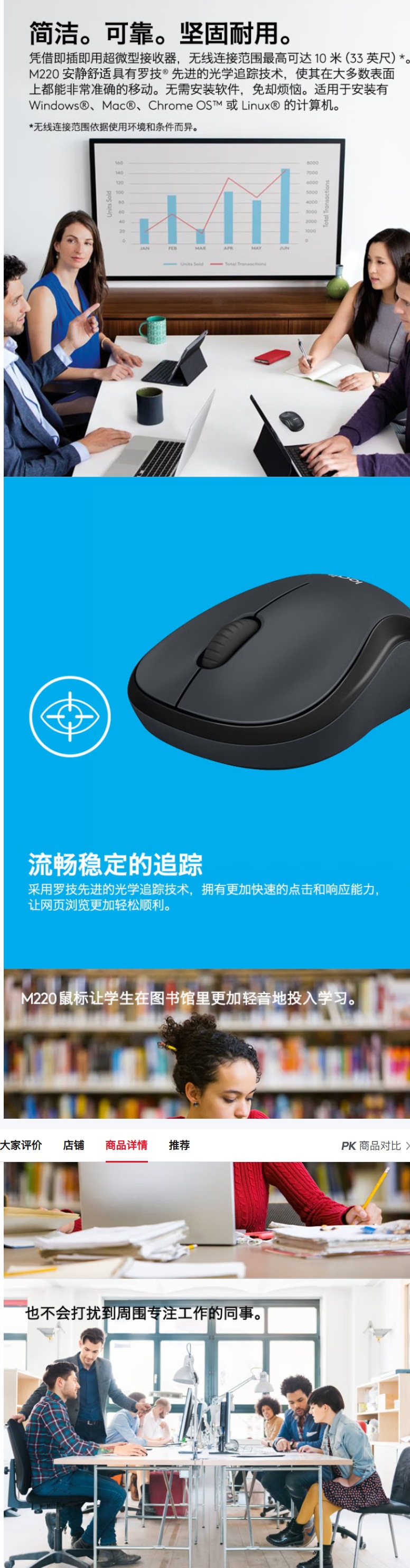 로지텍 마우스 M220 인기 공식 라이트 마우스 무선 마우스 오피스 마우스 무선 2.4G 수신
