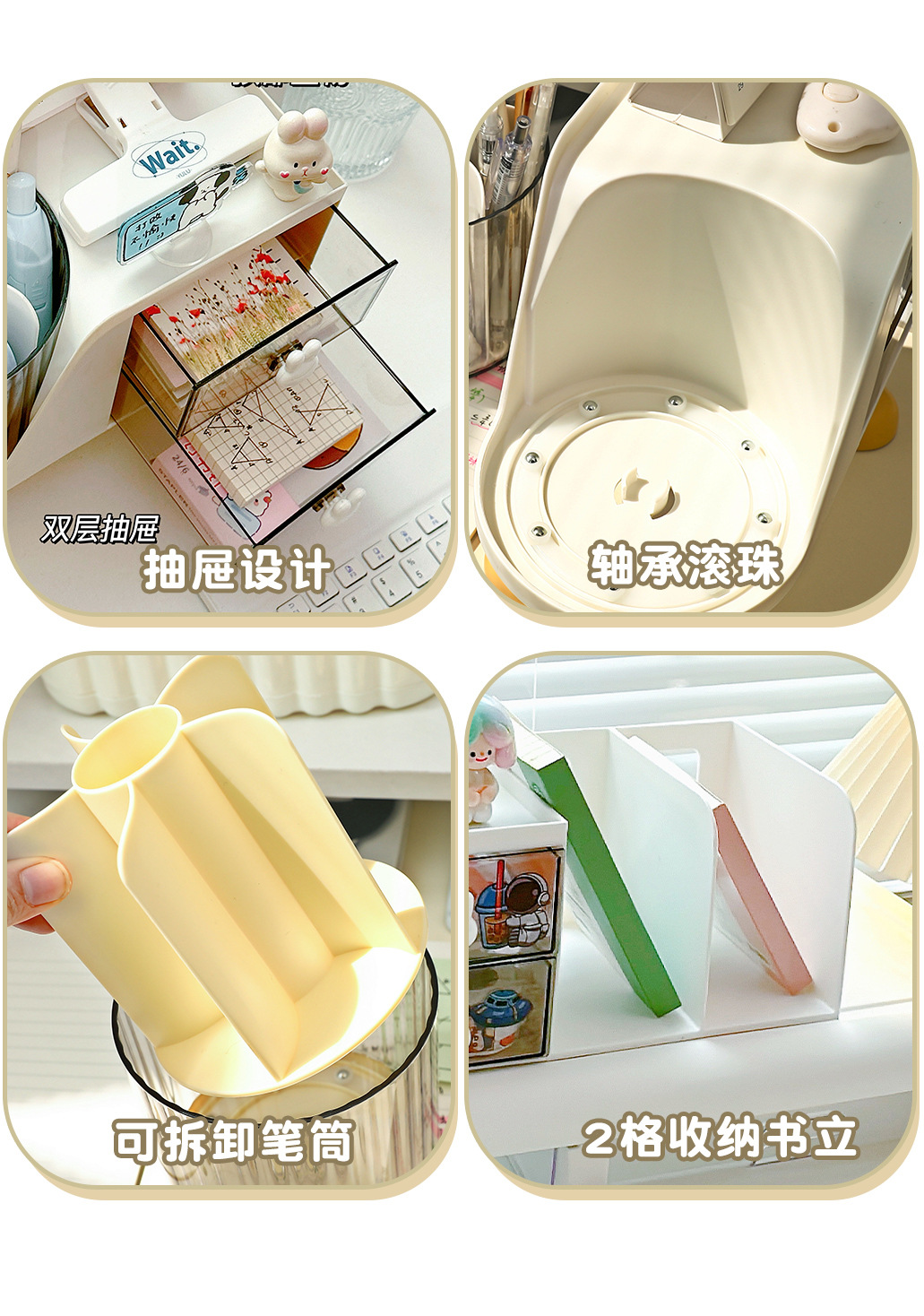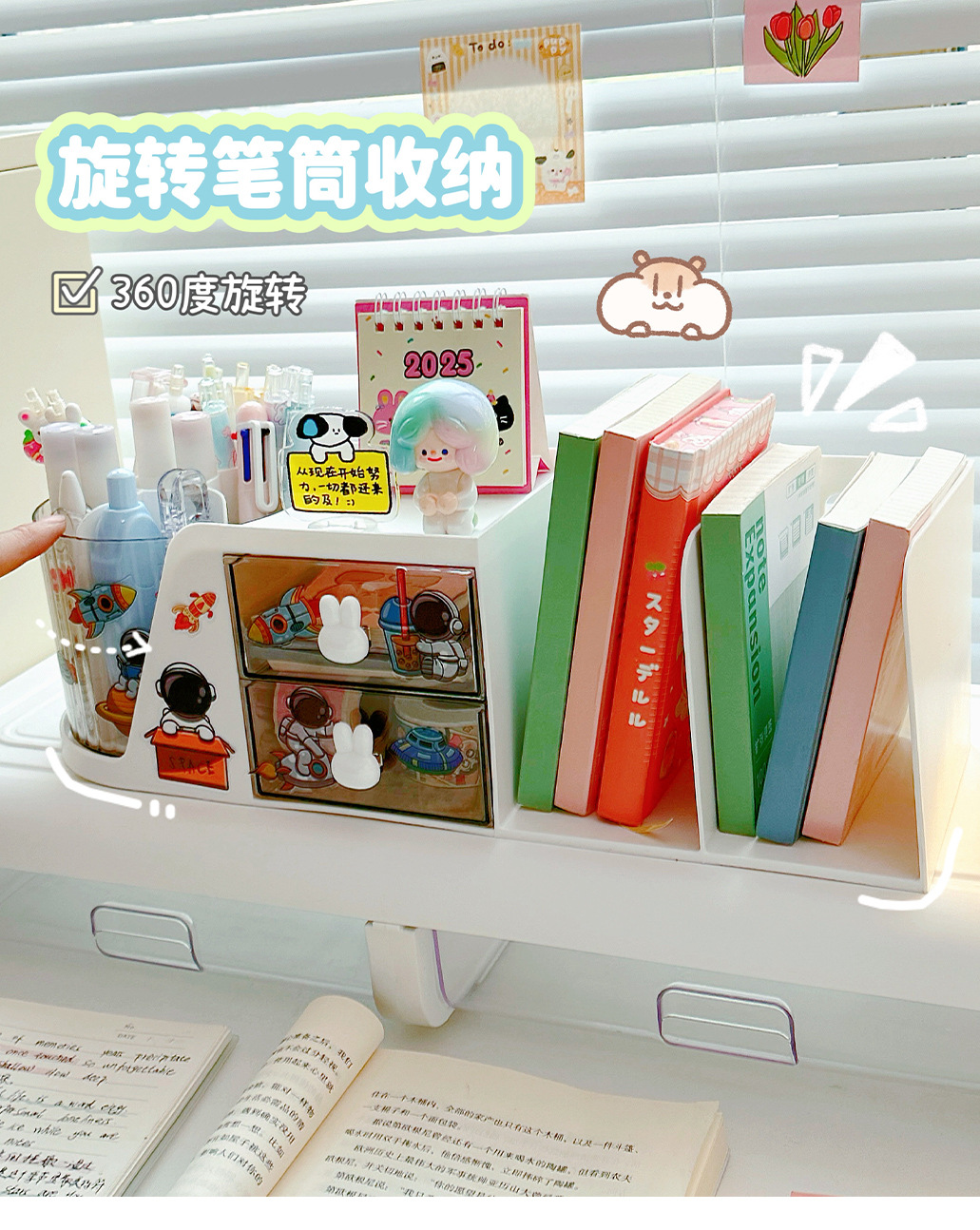 대용량 책 스탠드 보관 상자 회전식 펜 홀더 학생 데스크탑 어린이 책상 보관함 사무실 다기능스토어 가기