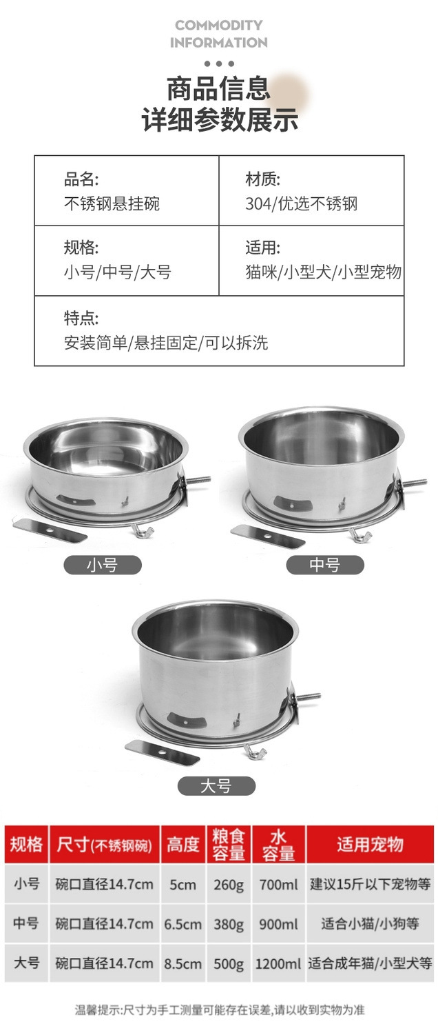 304 스테인레스 스틸 교수형 안티 터닝 넥 가드 애완 동물 그릇 고양이와 개 케이지 고정 피더 미끄럼 방지 먹이 그릇