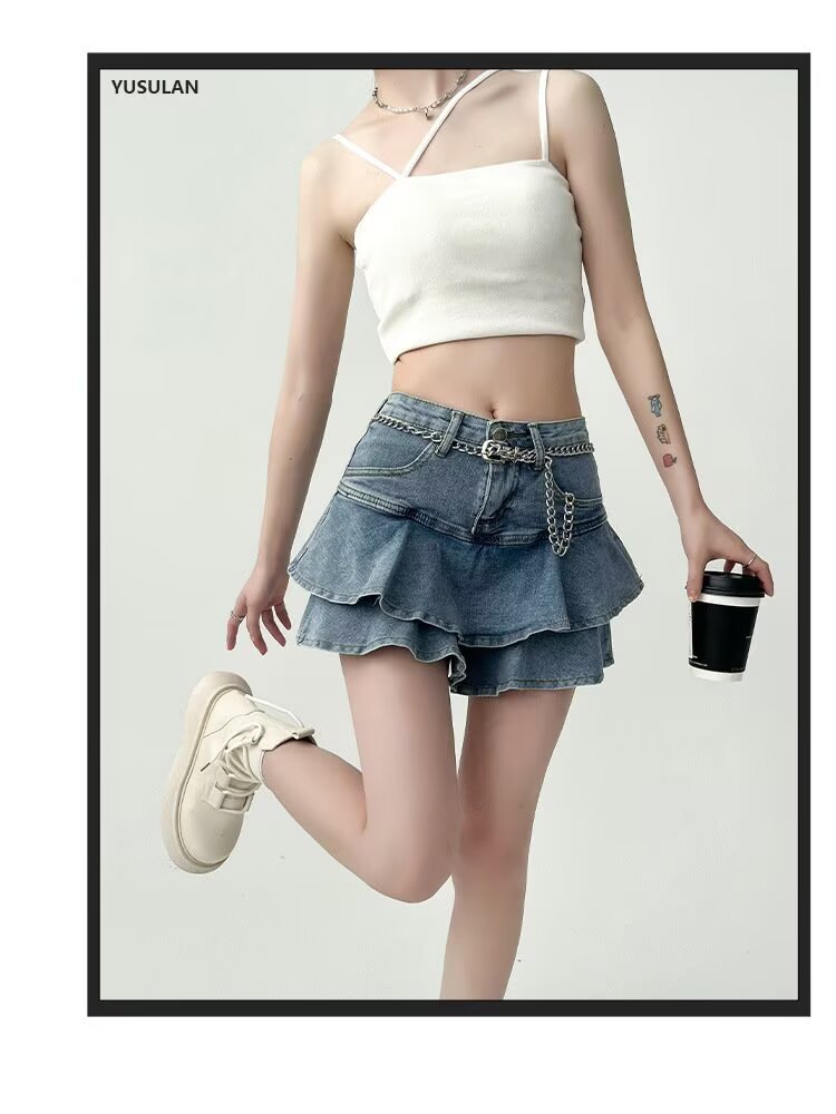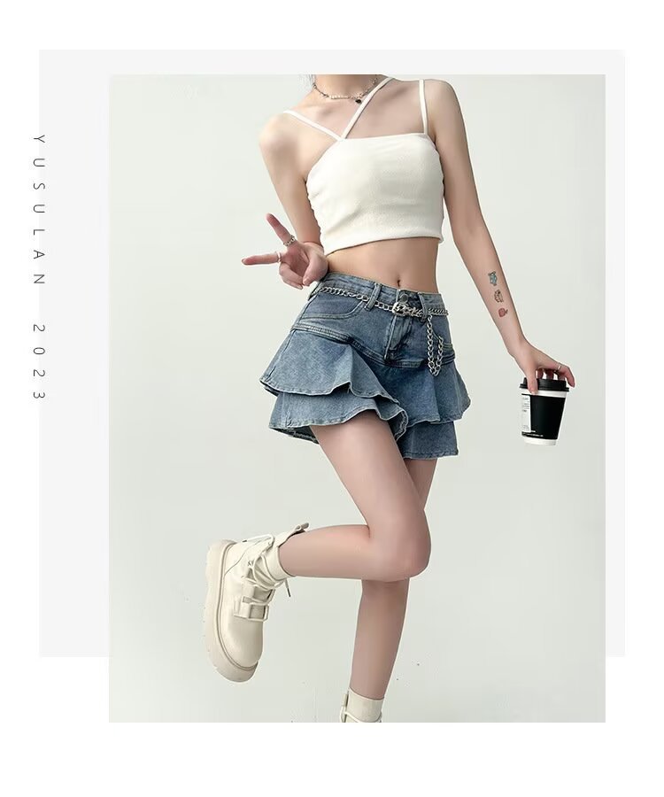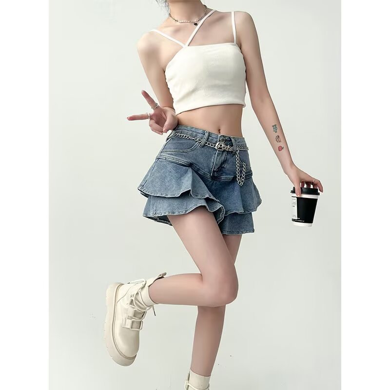 러플 데님 짧은 치마 여성 여름 높은 허리 케이크 스커트 슬리밍 엉덩이 A 형 스파이스 소녀의 짧은 피쉬 테일 스커트스토어 가기