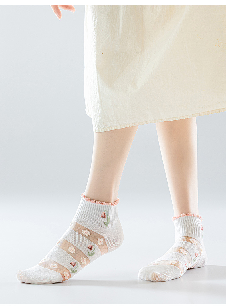 여성용 양말 여름 얇은 카드 스타킹 통기성 레이스 귀여운 짧은 양말 일본식 투명 달콤한 다용도 여성 양말스토어 가기