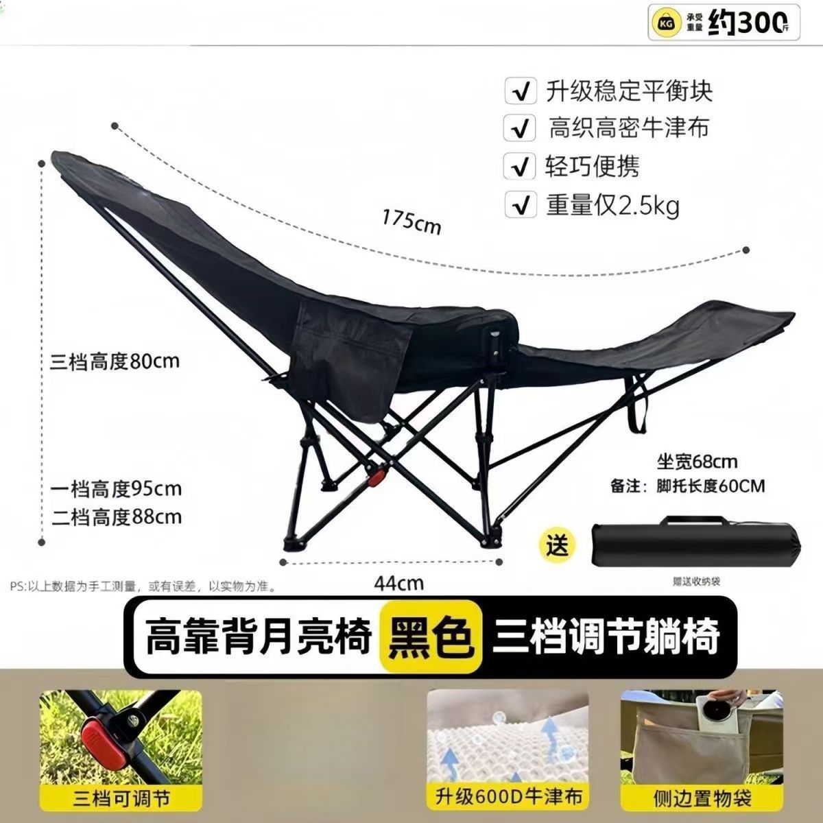 야외용 접이식 의자, 휴대용 문체어, 비치체어, 낚시용 3단계 등받이 조절 의자, 다리받침대 포함, 캠핑 및 낮잠용 접이식 의자